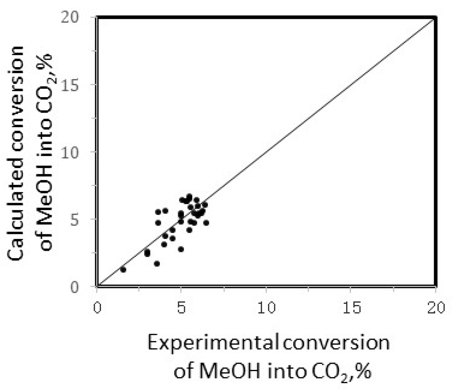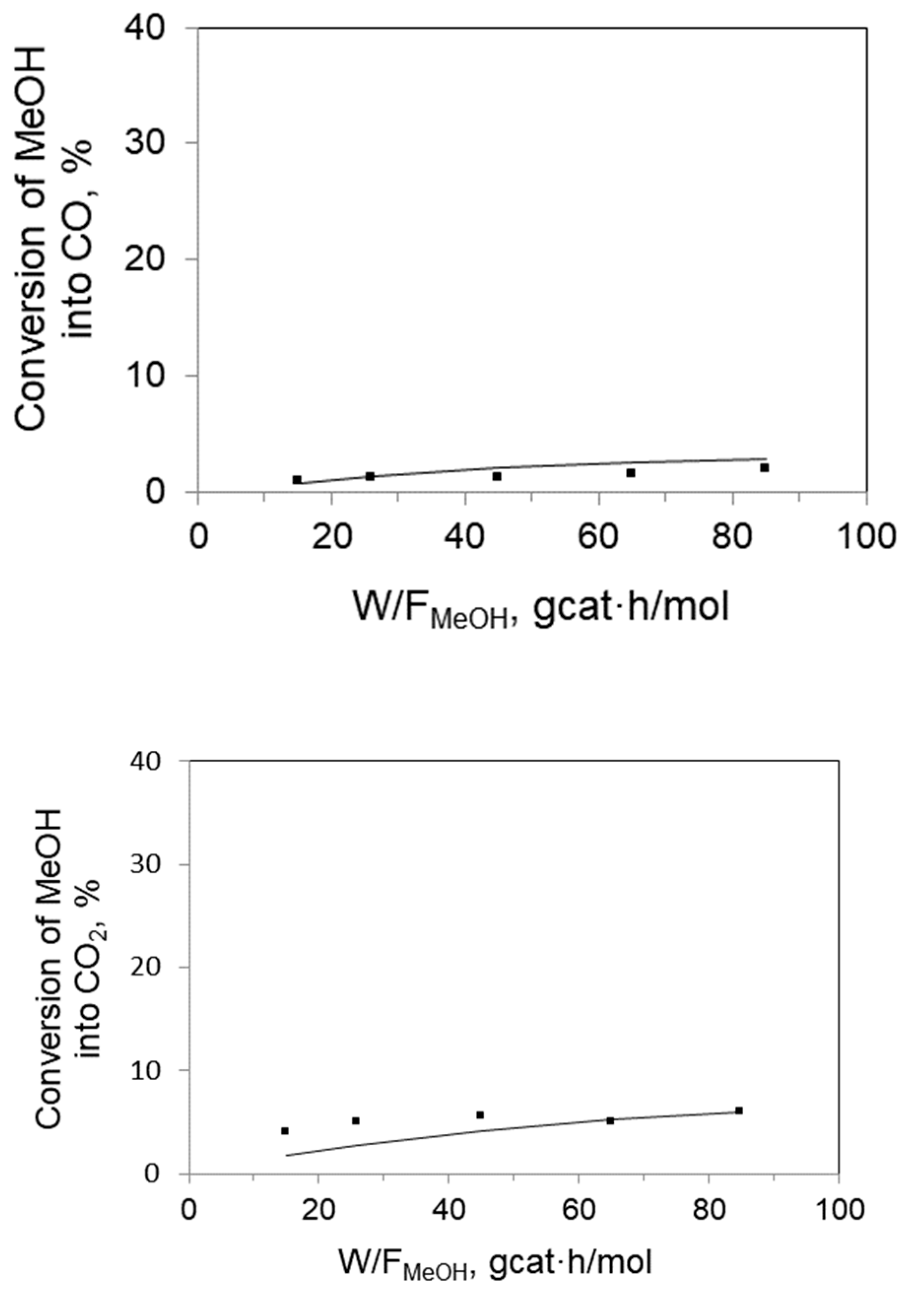 | W/FMeOH0 | Space time in terms of methanol feed, kgcat h/kmol |