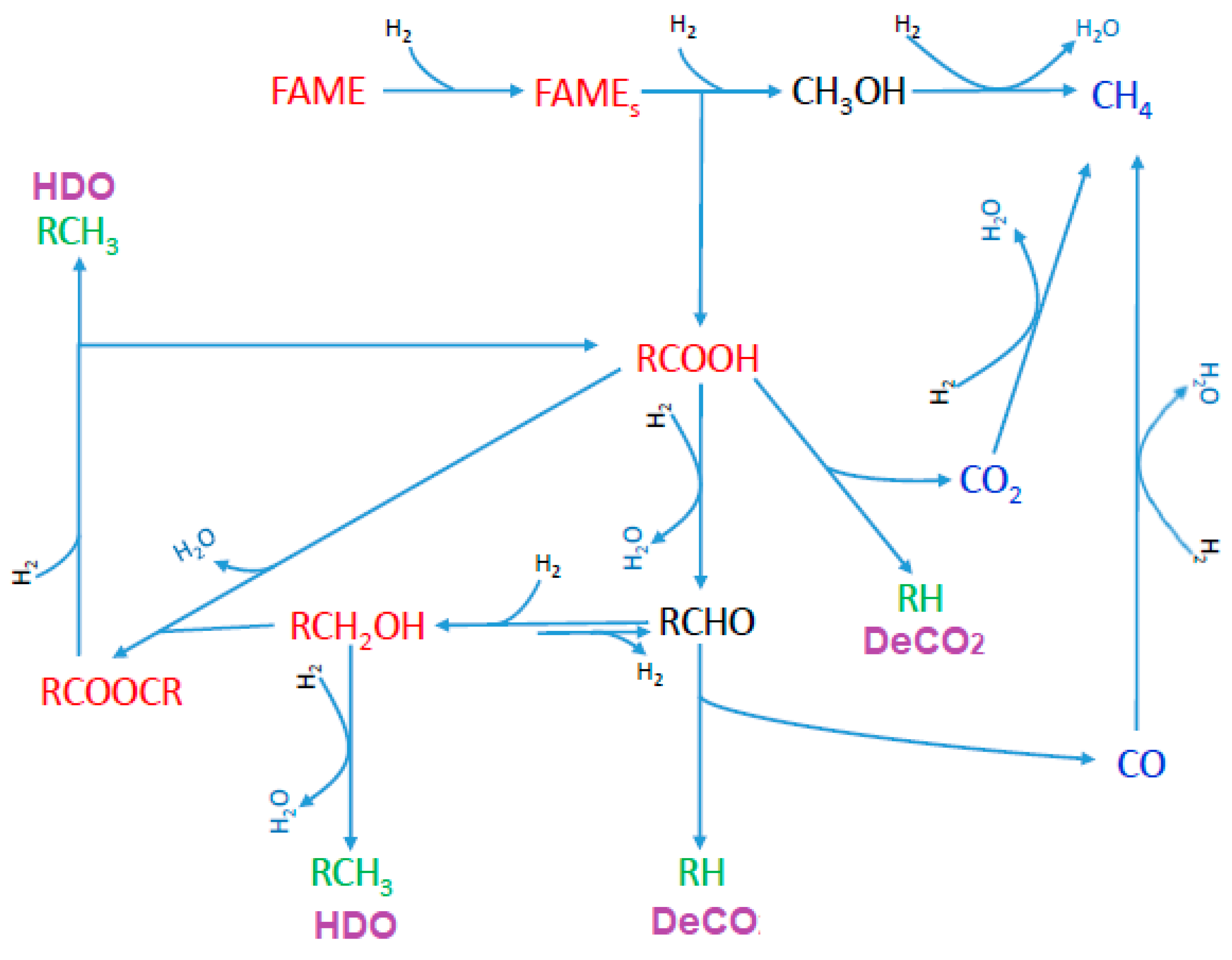 - Fani, K.; Lycourghiotis, S.; Bourikas, K.; Kordouli, E. Biodiesel upgrading to renewable diesel over nickel supported on natural mordenite catalysts. Ind. Eng. Chem. Res. 2021, 60, 18695–18706. [Google Scholar] [CrossRef]
