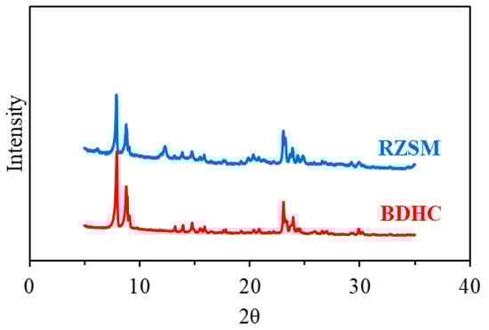 As shown in Figure 2, the N2 adsorption–desorption isotherms of BDHC and RZSM both exhibited type IV physisorption, typical of micro- and mesoporous structures.