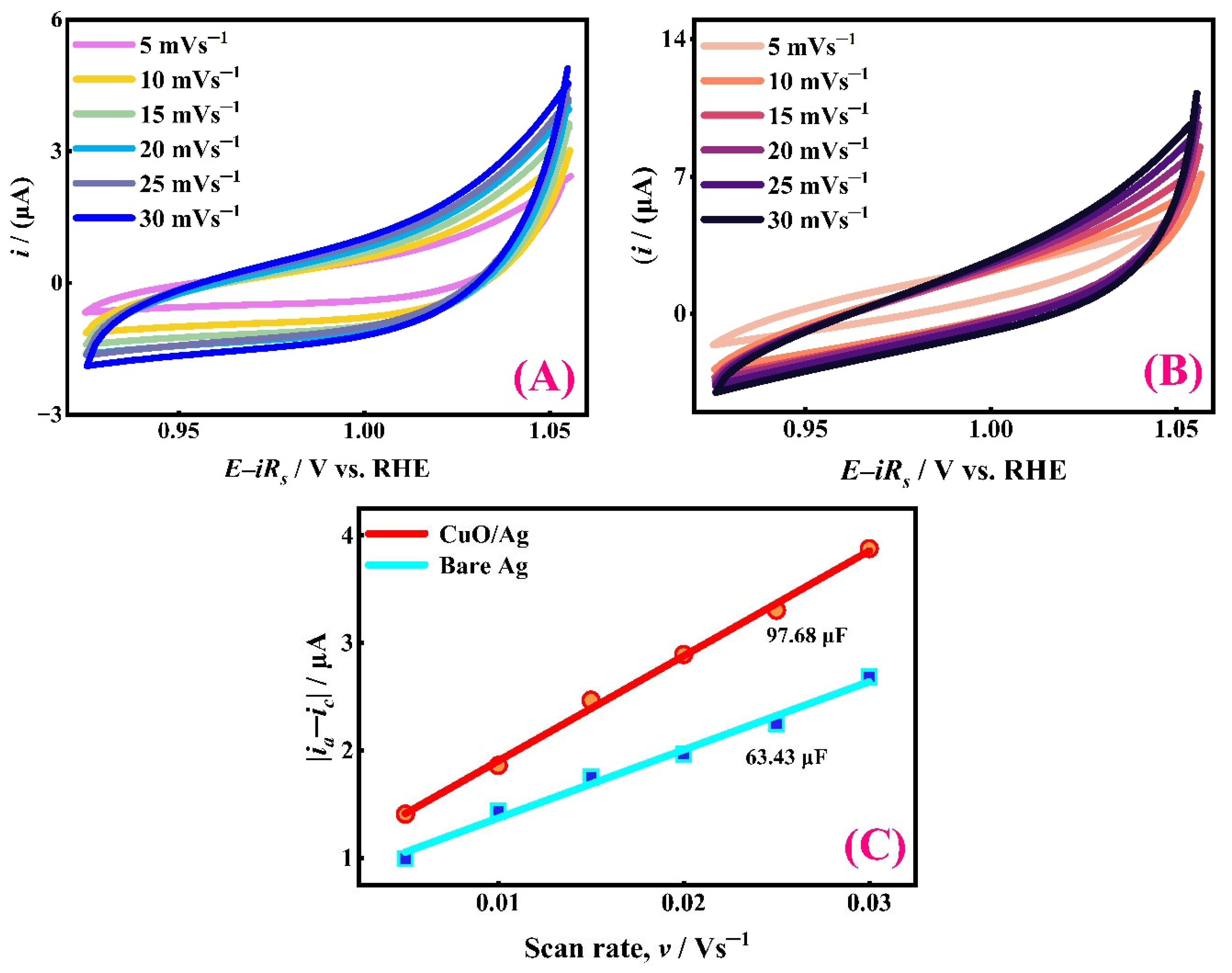 Chicago/Turabian StyleLaila, Rawnak, Mohammad Imran Hossain, Nayan Ranjan Singha, Merajuddin Khan, Mostafizur Rahaman, Jamal Uddin, and Mohammad A. Hasnat. 2025. "Electrocatalytic Reduction of Oxygen on CuO-Immobilized Ag Surface Prepared by SILAR Method in Alkaline Medium" Catalysts 15, no. 11: 1012. https://doi.org/10.3390/catal15111012