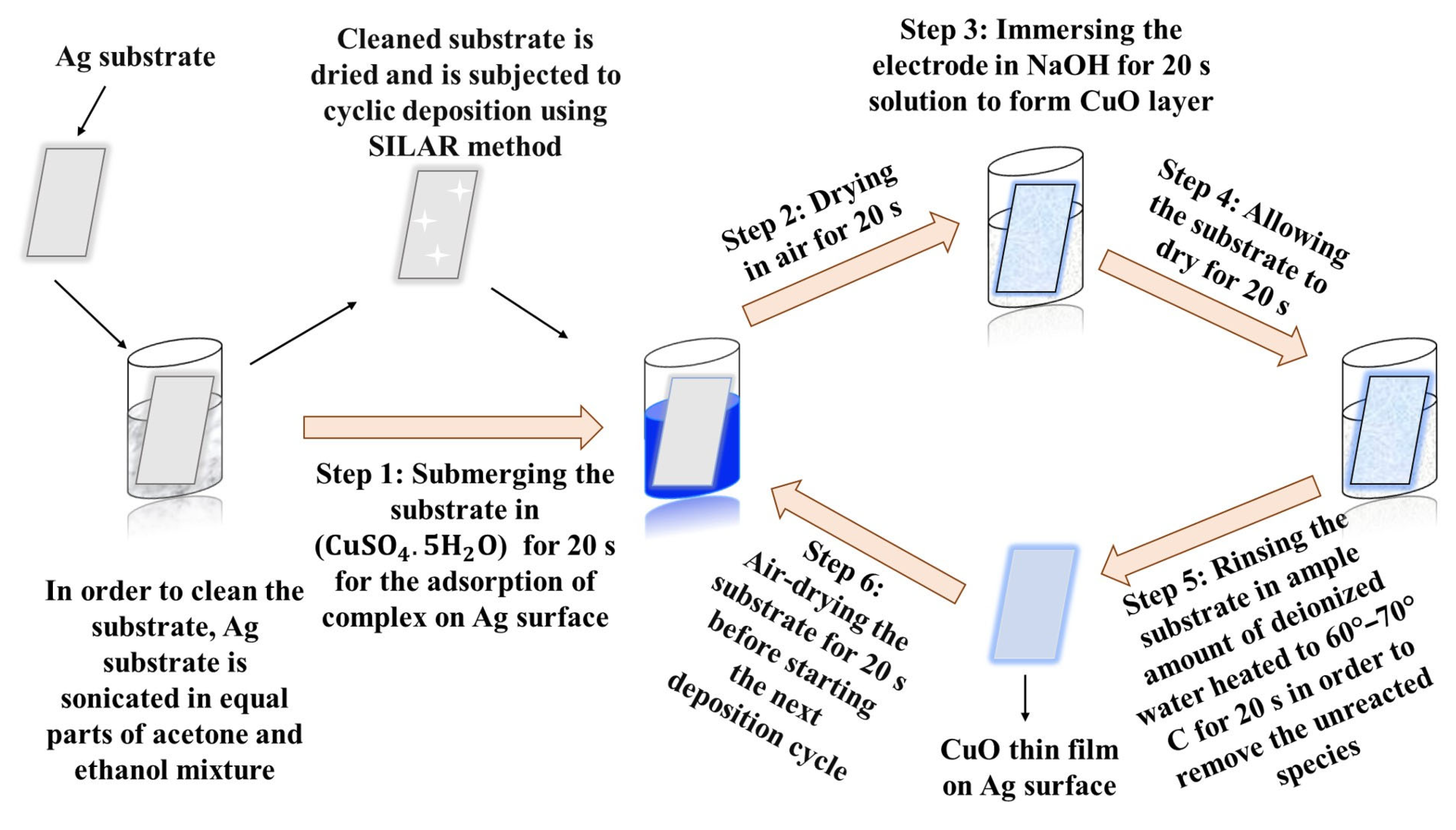 - Patwary, M.A.M.; Hossain, M.A.; Ghos, B.C.; Chakrabarty, J.; Haque, S.R.; Rupa, S.A.; Uddin, J.; Tanaka, T. Copper Oxide Nanostructured Thin Films Processed by SILAR for Optoelectronic Applications. RSC Adv. 2022, 12, 32853–32884. [Google Scholar] [CrossRef] [PubMed]
