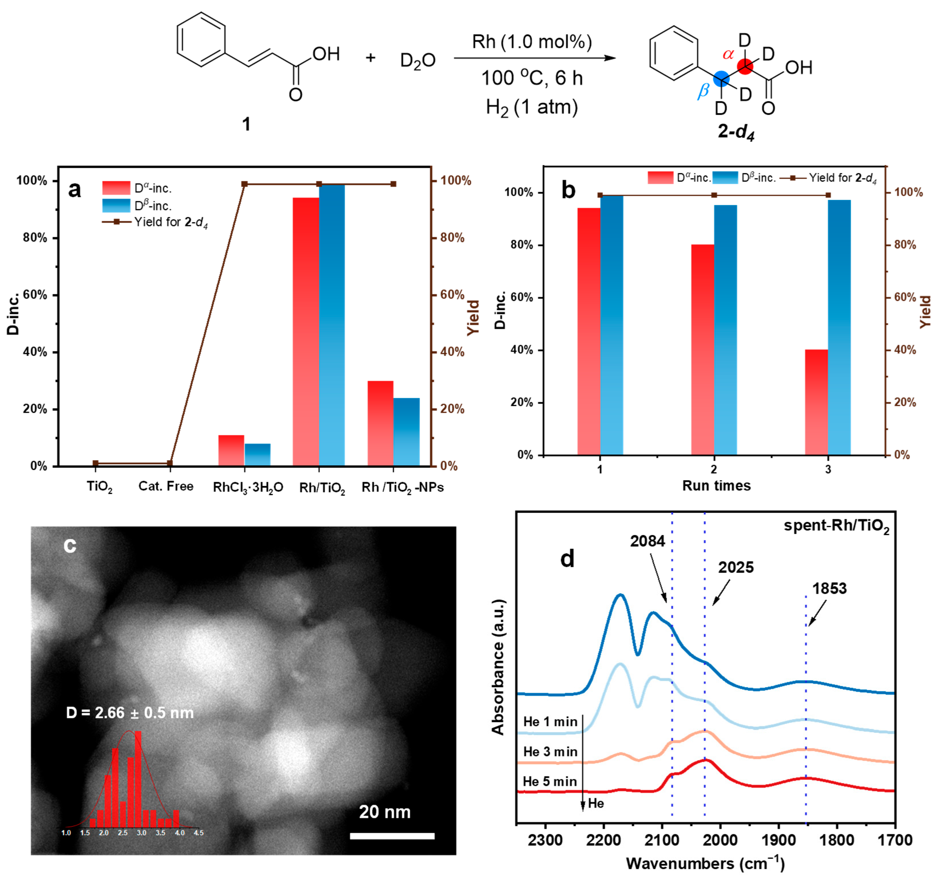 APA StyleAsif, F., Li, S.-X., Min, X.-T., Zhang, W.-T., & Qiao, B. (2025). Atomically Dispersed Rhodium on TiO2 for Tandem Hydrogenation–H/D Exchange of Cinnamic Acid. Catalysts, 15(11), 1014. https://doi.org/10.3390/catal15111014