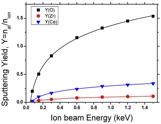 - Wang, G.D.; Kong, D.D.; Pan, Y.H.; Pan, H.B.; Zhu, J.F. Low Energy Ar-Ion Bombardment Effects on the CeO2 Surface. Appl. Surf. Sci. 2012, 258, 2057–2061. [Google Scholar] [CrossRef]