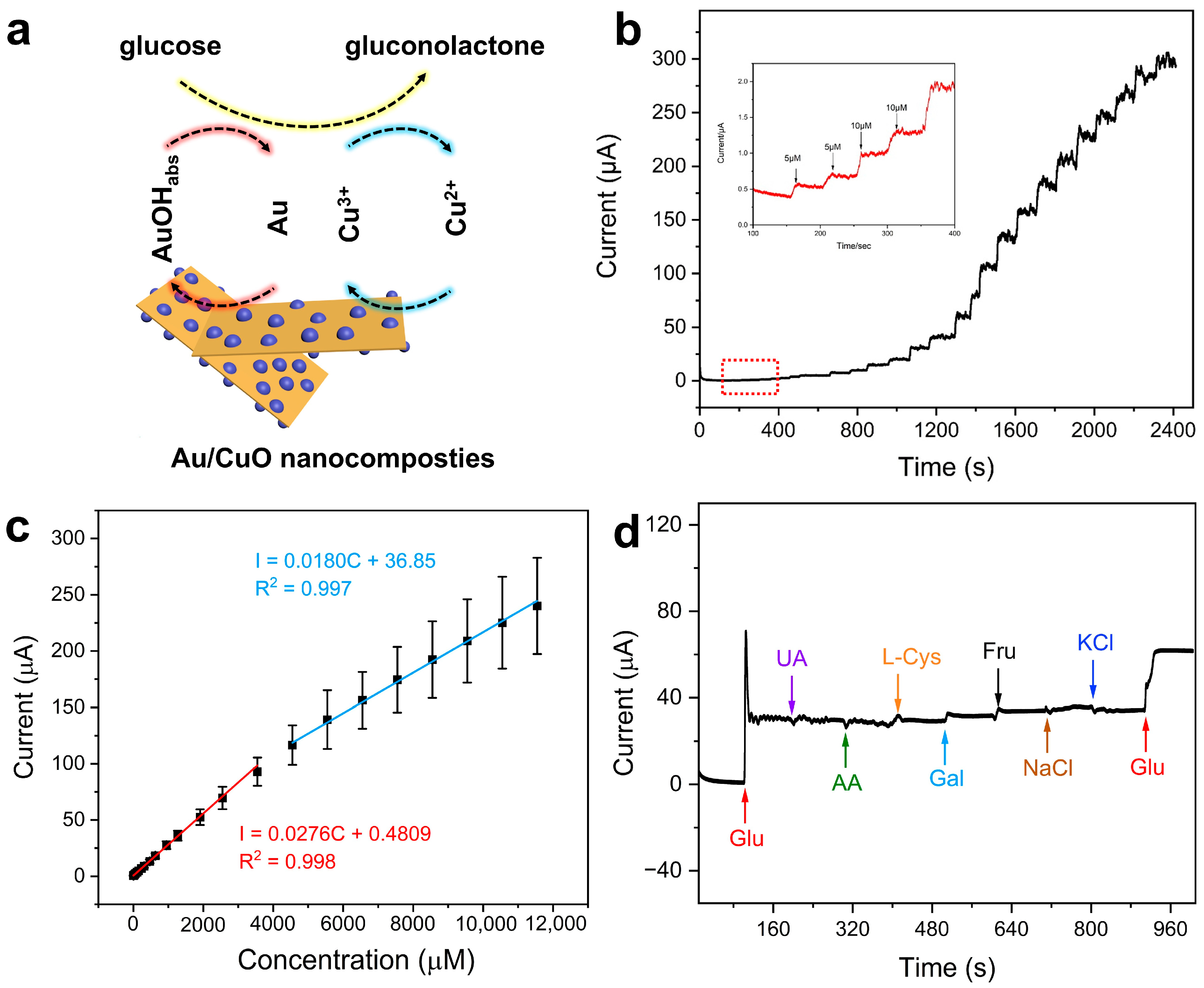 Chicago/Turabian StyleMa, Lian, Tao Wang, Hao Mei, Yuhao You, Zhandong Lin, Weishuang Li, Bojie Li, Silin Kang, and Lei Zhu. 2025. "Facile Preparation of High-Performance Non-Enzymatic Glucose Sensors Based on Au/CuO Nanocomposites" Catalysts 15, no. 11: 1020. https://doi.org/10.3390/catal15111020