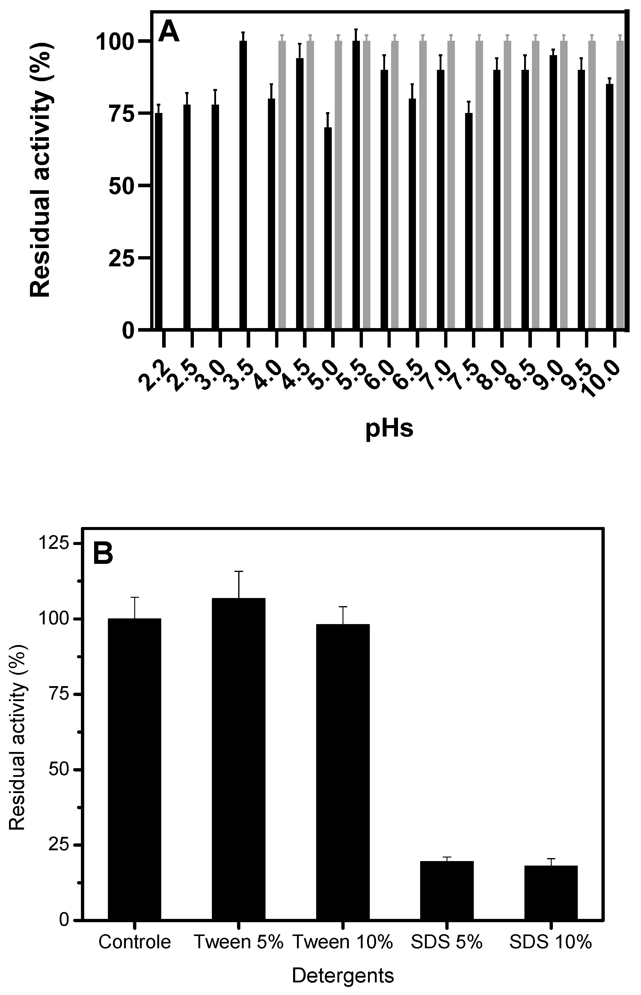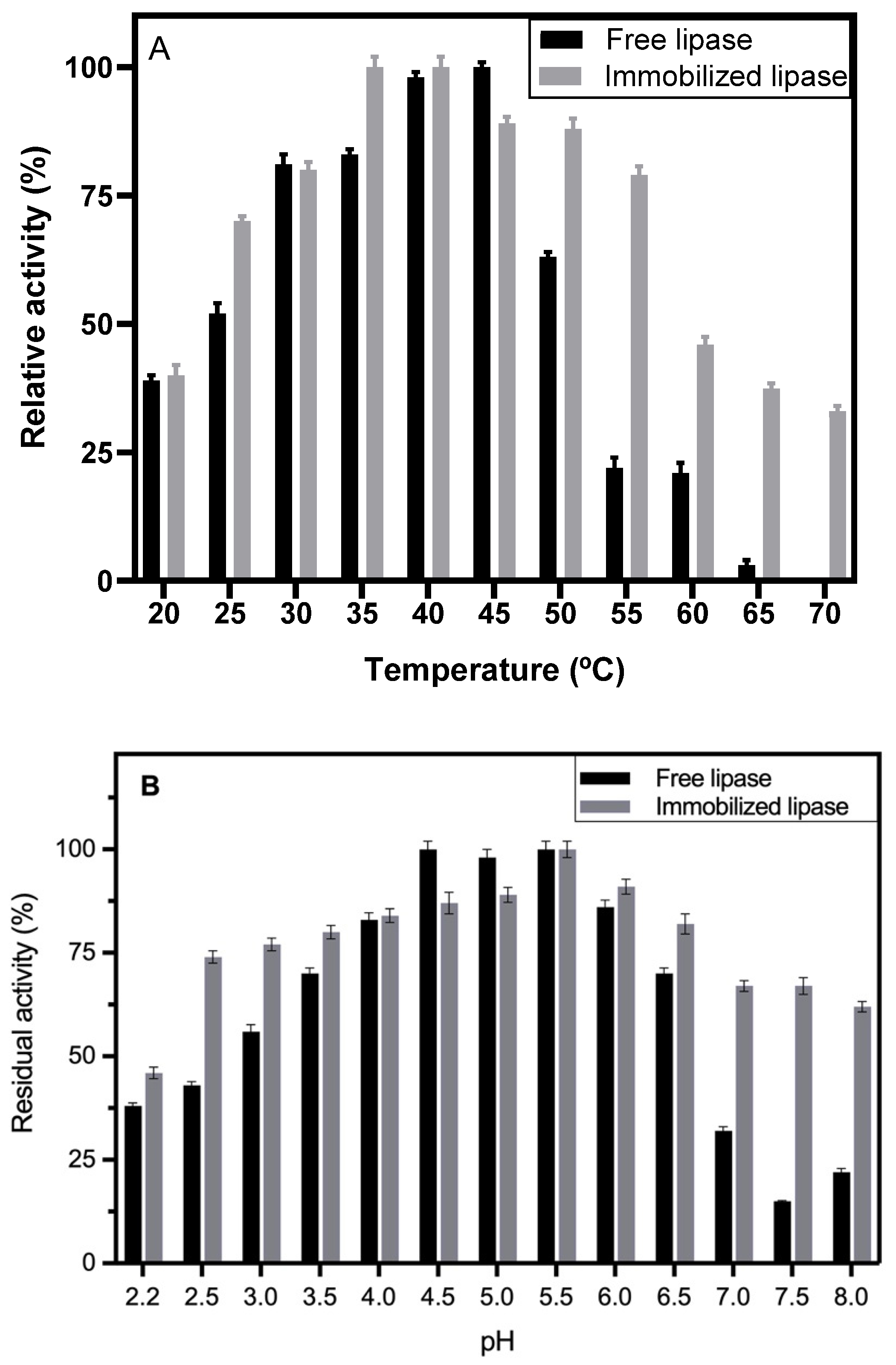 2.5. Lipase Characterization: Effect of Temperature and pH on Activity and Stability
