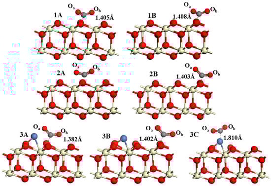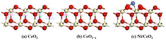 All catalyst models use a periodic 3 × 3 supercell representation with six layers and 20 Å of vacuum to avoid interactions between periodic images. The bottom four atomic layers are fixed, while the top two layers and the adsorbates are fully relaxed without any constraints. The CeO