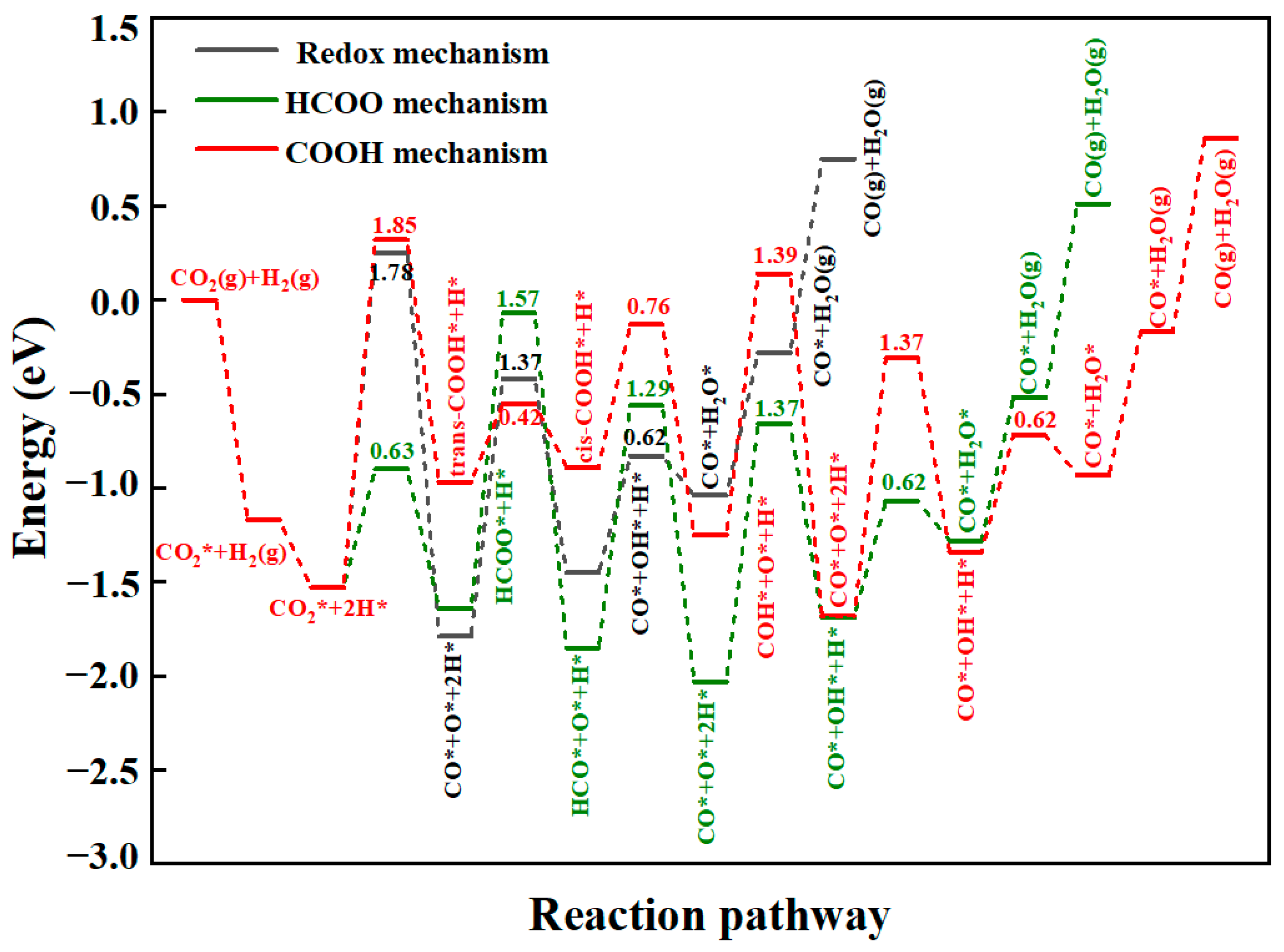 32] found through experiments and DFT simulations that the RWGS reaction catalyzed by single-atom Re