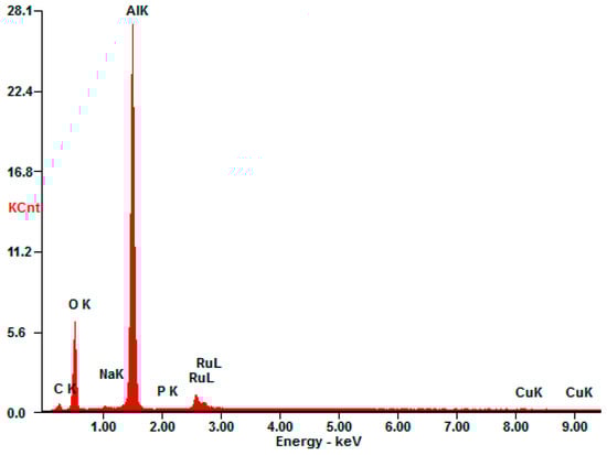 Concentrations of elements of the catalyst used as found by Energy-dispersive X-ray spectroscopy (K lines, wt.%). O 40.22; Al 51.82; P 0.22; Ru 5.42; Na 0.60; Cu 0.34.