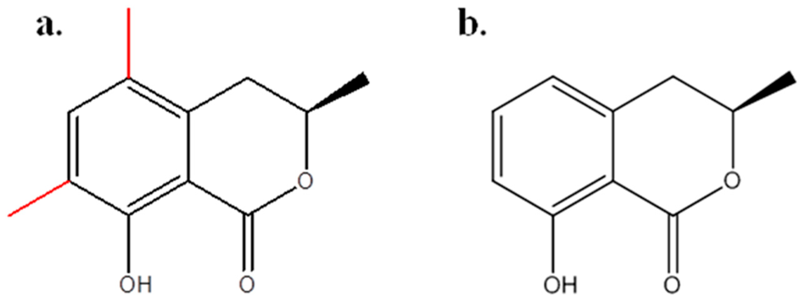 - Bestmann, H.J.; Kern, F.; Schafer, D.; Witschel, M.C. 3,4-Dihydroisocoumarins, a New Class of Ant Trail Pheromones. Angew. Chem. Int. Ed. Engl. 1992, 31, 795–796. [Google Scholar] [CrossRef]