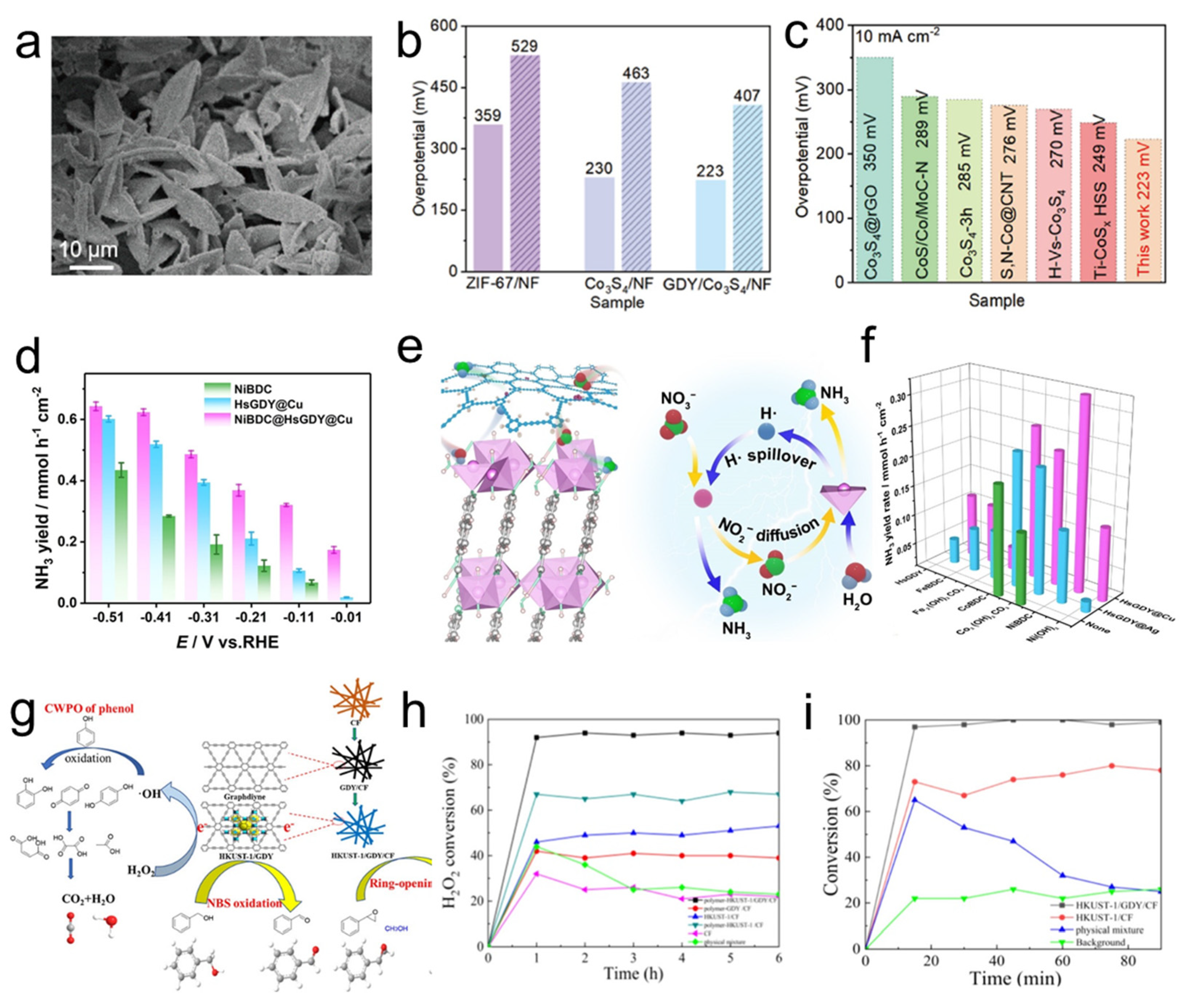 | HKUST-1/GDY/CF | H2O2 conversions: ~94% | Facilitate electron transfer | ||