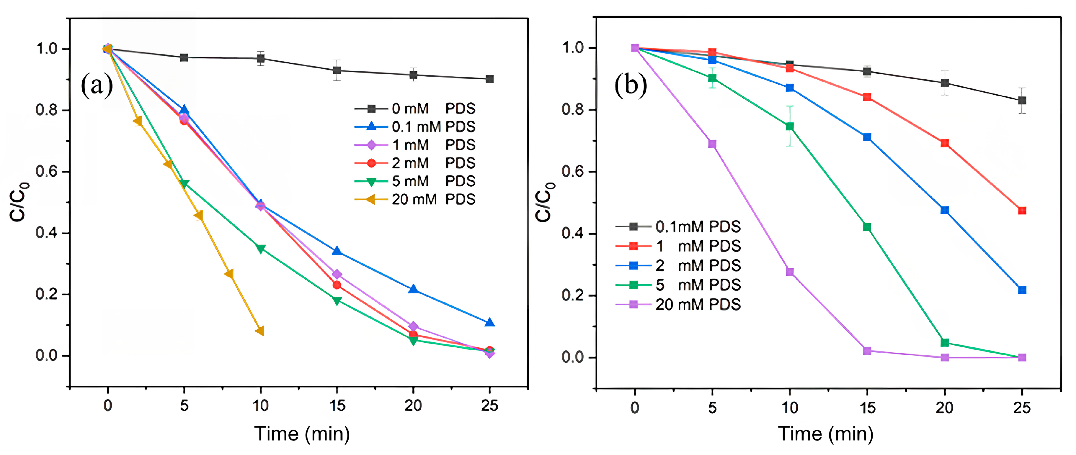 2.3. Influencing Factors of BPA Degradation by MNBs/PDS
