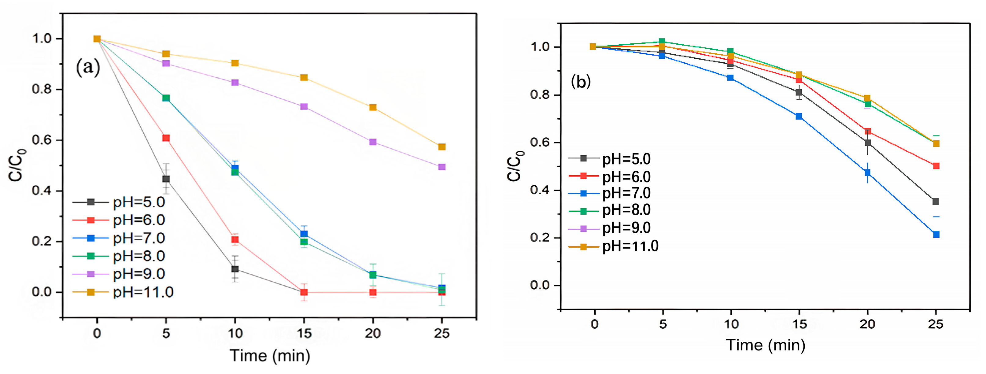 - Li, T.; Wang, X.; Fan, Z.; Wang, X.; Wu, Z.; Akram, M.; Wang, L.; Liu, J.; Pan, J.; Gao, B. Unique Role of Doped Mo into Fe-Based Catalyst to Intensify Peroxydisulfate Activation for Micropollutants Degradation: Promote the Conversion of SO4•− to FeIV = O. Chem. Eng. J. 2024, 500, 157255. [Google Scholar] [CrossRef]