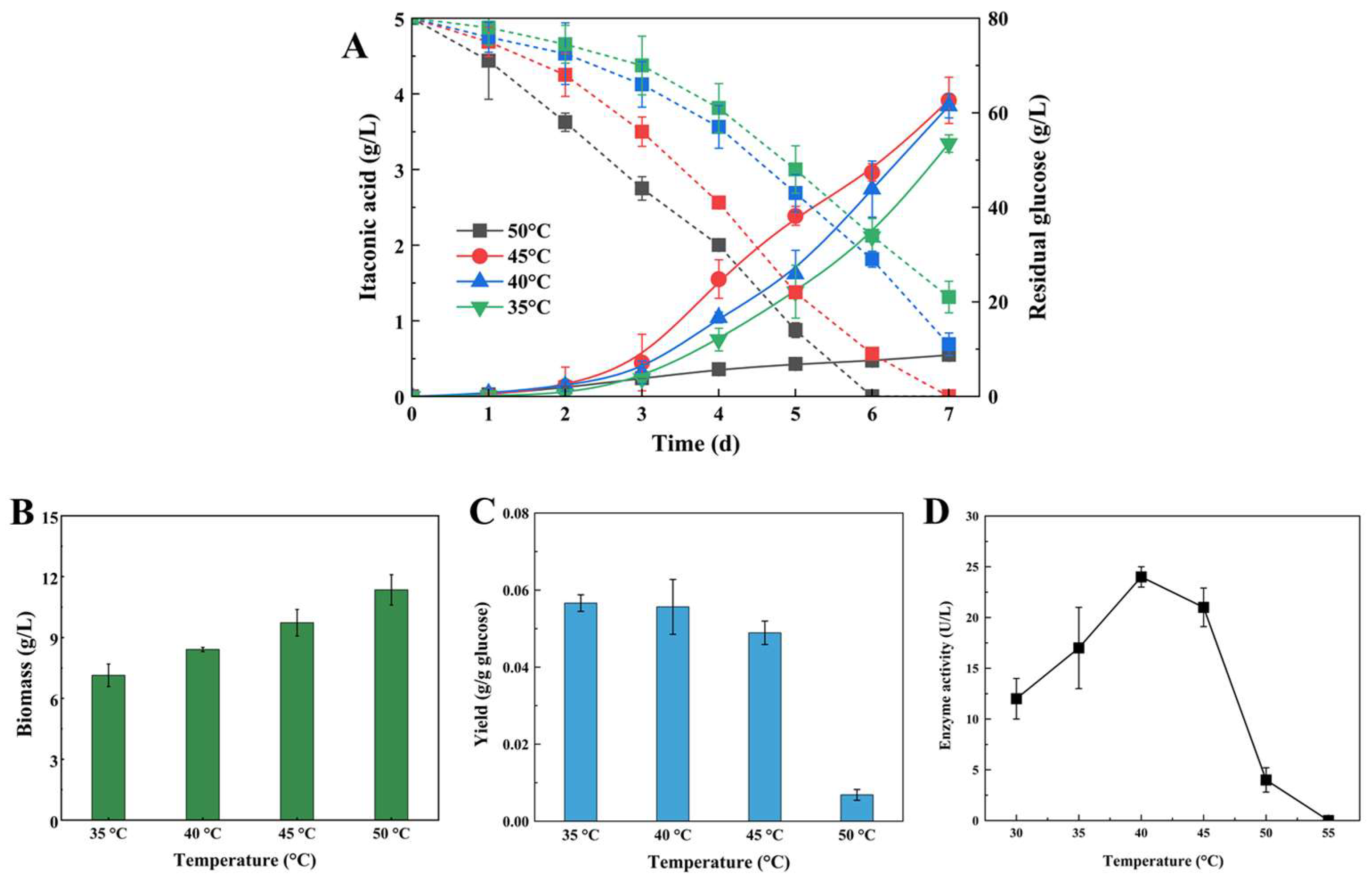 - Zhang, R.; Liu, H.; Ning, Y.; Yu, Y.; Deng, L.; Wang, F. Recent Advances on the Production of Itaconic Acid via the Fermentation and Metabolic Engineering. Fermentation 2023, 9, 71. [Google Scholar] [CrossRef]