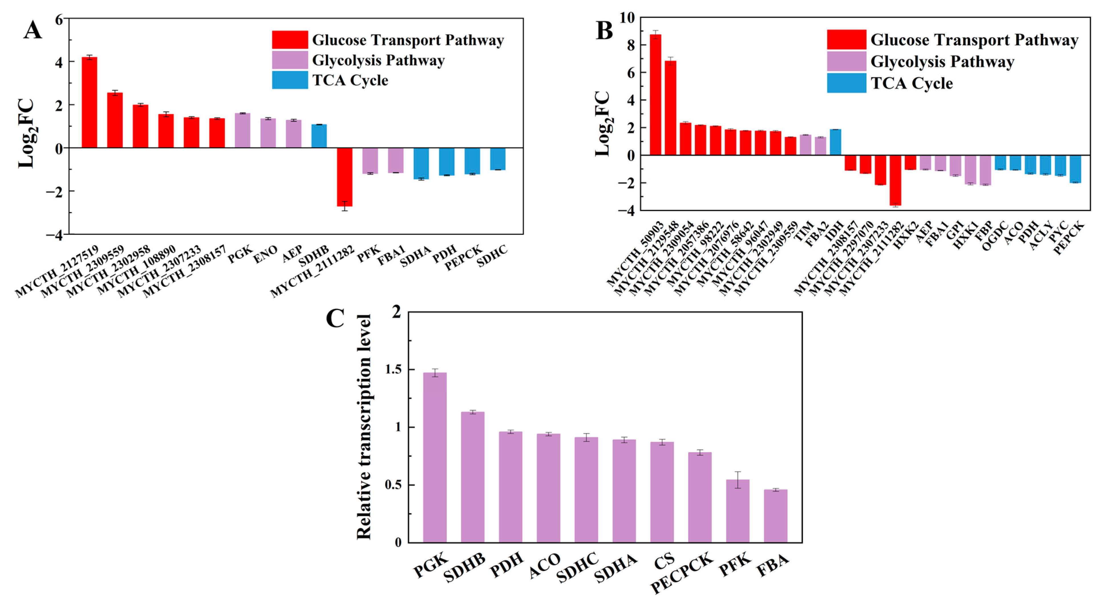 2.4. Understanding the Mechanism of Temperature Regulation on IA Synthesis in M. thermophila