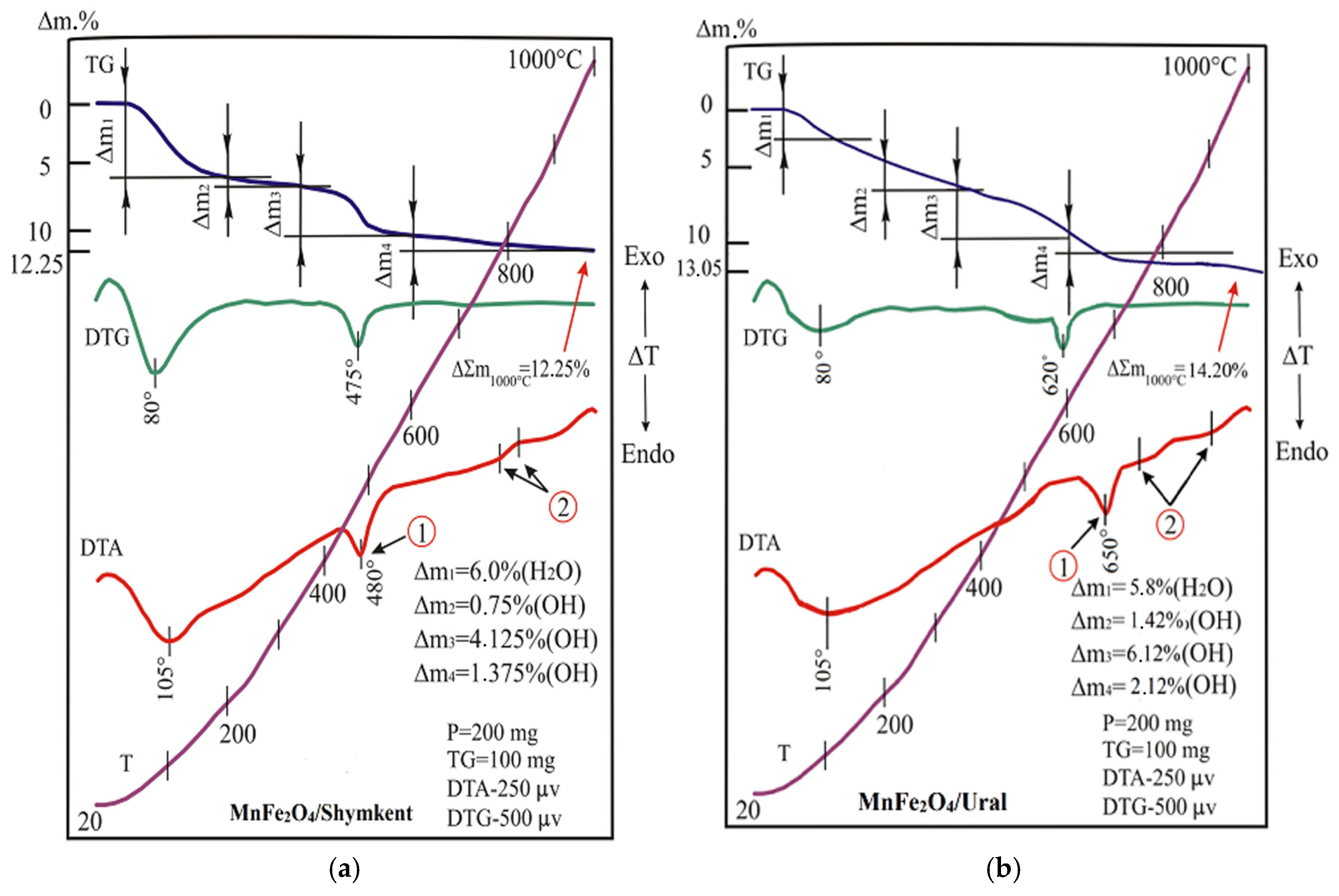 The results of thermal analysis (DTA and TGA) of the modified MnFe
