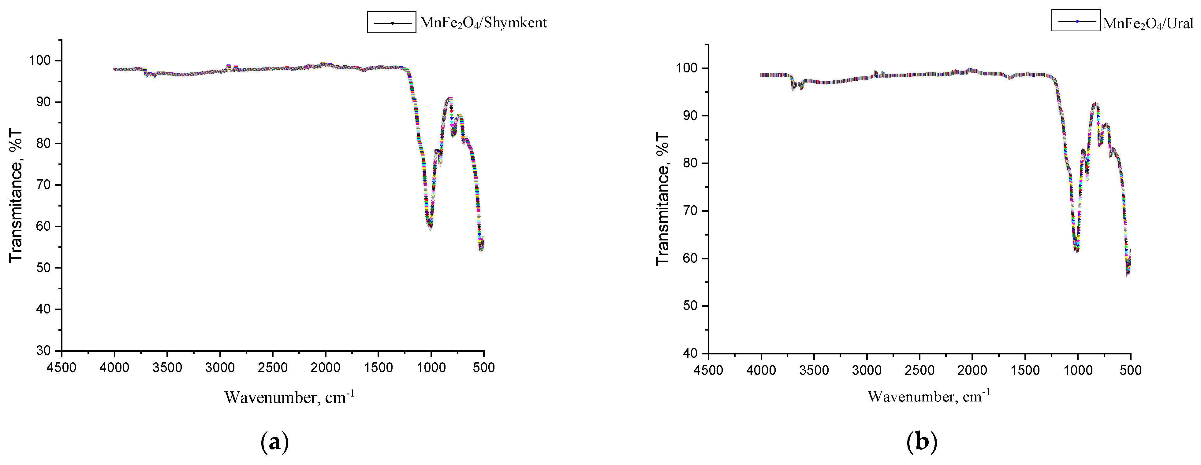3.2. Synthesis of MnFe2O4/Shymkent and MnFe2O4/Ural