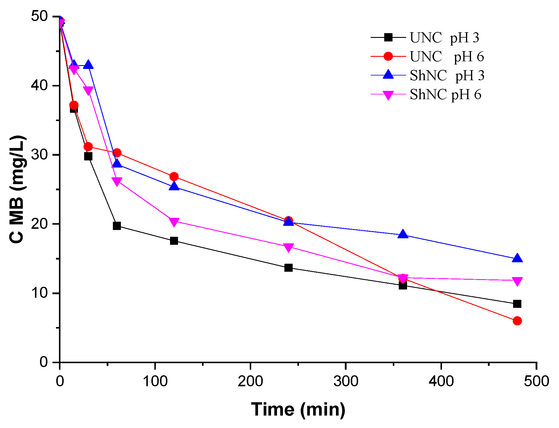 MB,0 = 50 mg/L, C