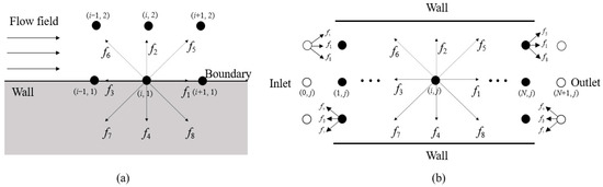 - Zou, Q.; He, X. On pressure and velocity boundary conditions for the lattice Boltzmann BGK model. Phys. Fluids 1997, 9, 1591–1598. [Google Scholar] [CrossRef]