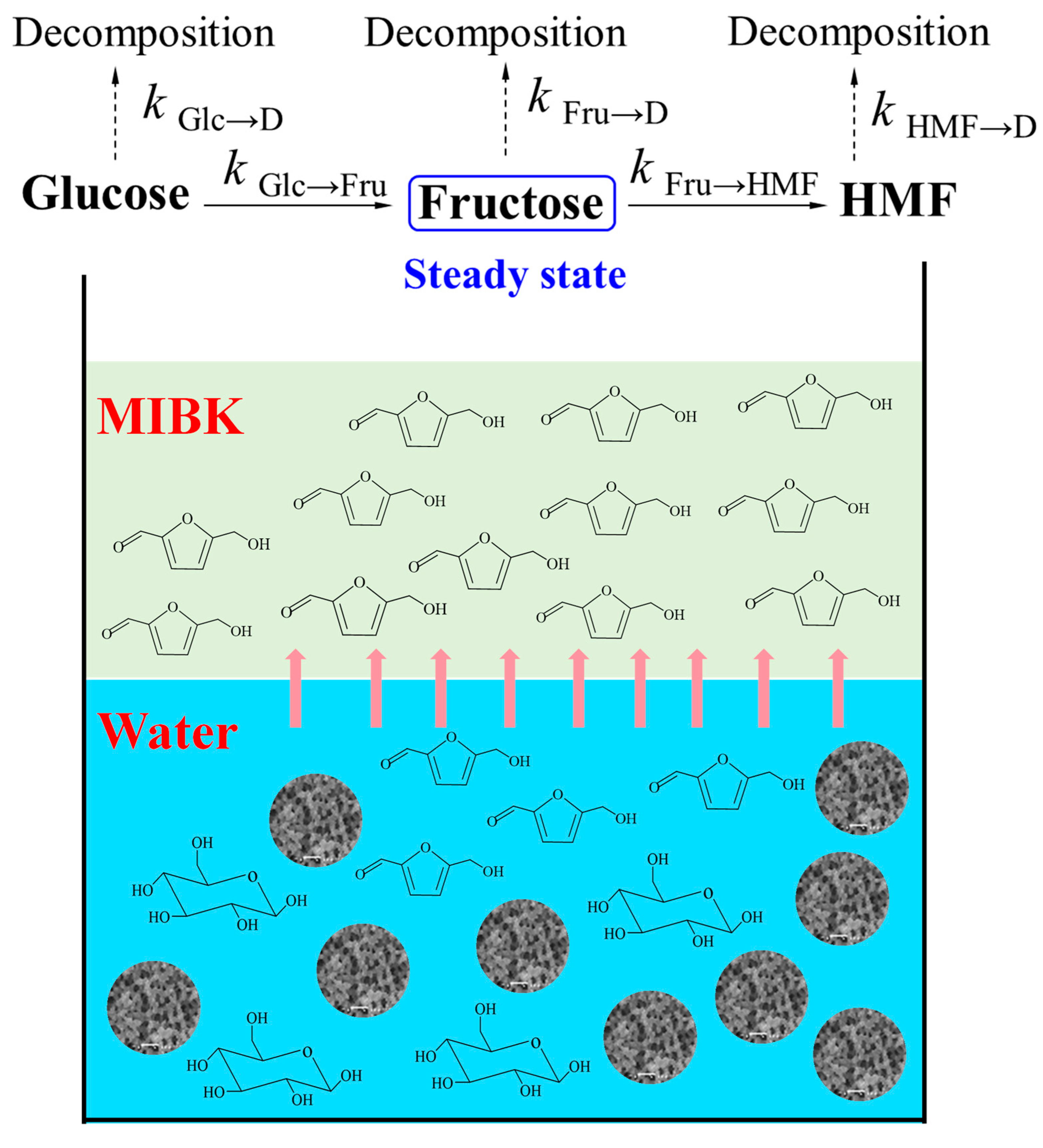 2.4. Dehydration of Glucose in a Water/MIBK Biphasic System
