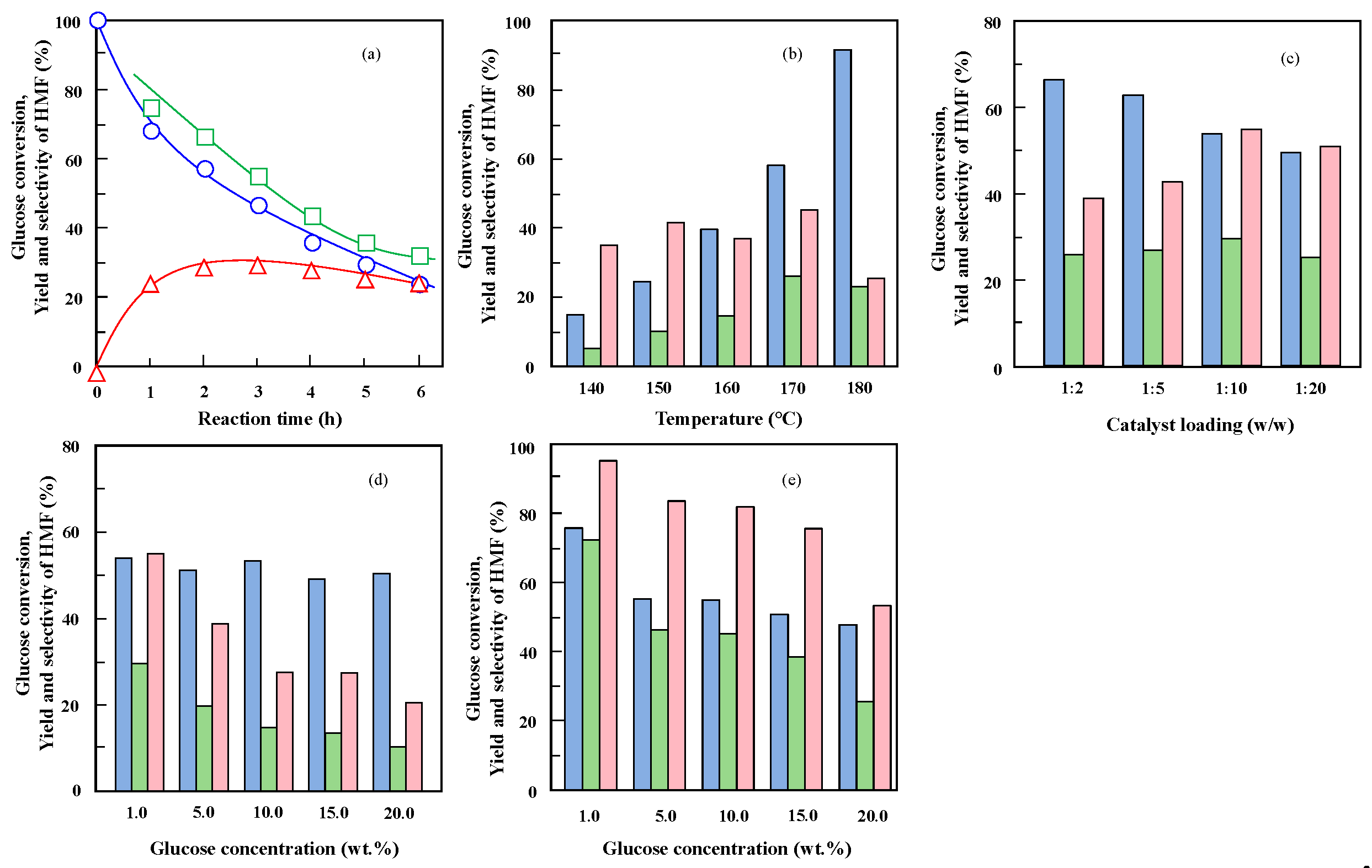 - Zhu, L.; Fu, X.; Hu, Y.; Hu, C. Controlling the reaction networks for efficient conversion of glucose into 5-hydroxymethylfurfural. ChemSusChem 2020, 13, 4812–4832. [Google Scholar] [CrossRef]