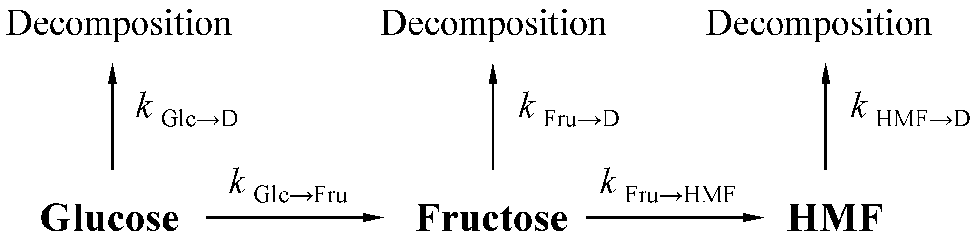 - Li, Y.; Lu, X.; Yuan, L.; Liu, X. Fructose decomposition kinetics in organic acids-enriched high temperature liquid water. Biomass Bioenerg. 2009, 33, 1182–1187. [Google Scholar] [CrossRef]