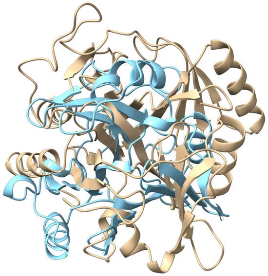 - Jumper, J.; Evans, R.; Pritzel, A.; Green, T.; Figurnov, M.; Ronneberger, O.; Tunyasuvunakool, K.; Bates, R.; Žídek, A.; Potapenko, A.; et al. Highly accurate protein structure prediction with AlphaFold. Nature 2021, 596, 583–589. [Google Scholar] [CrossRef] [PubMed]