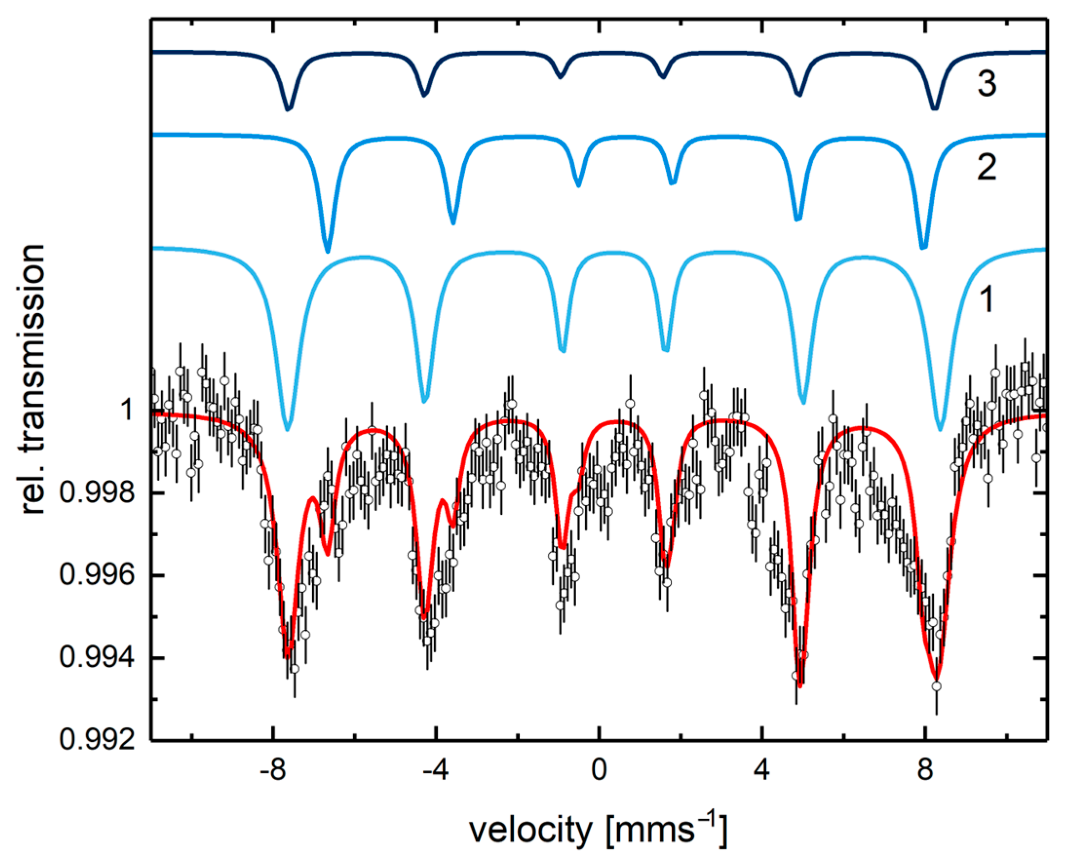 - Gunnlaugsson, H.P. Spreadsheet based analysis of Mössbauer spectra. Hyperfine Interact. 2016, 237, 79. [Google Scholar] [CrossRef]