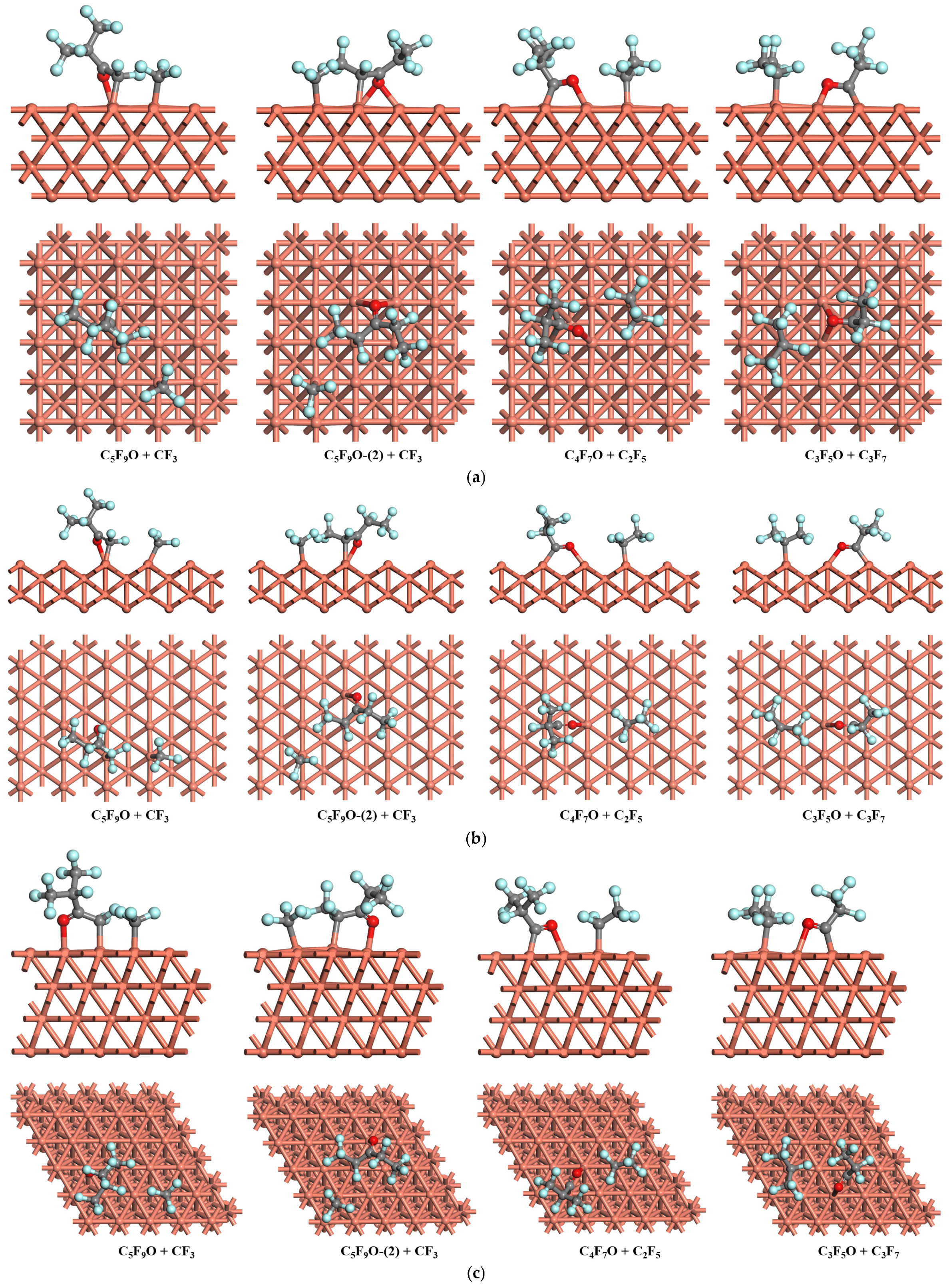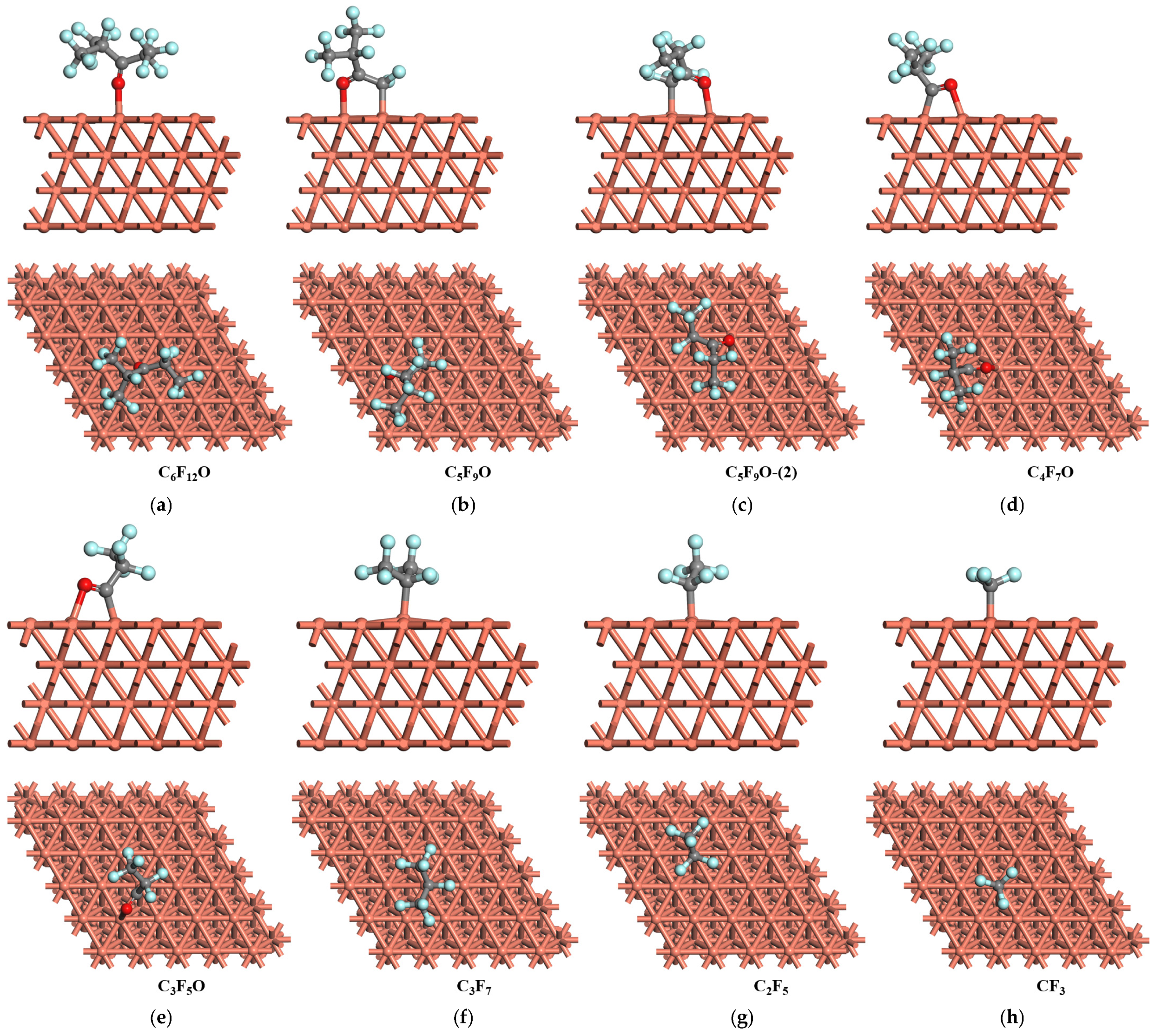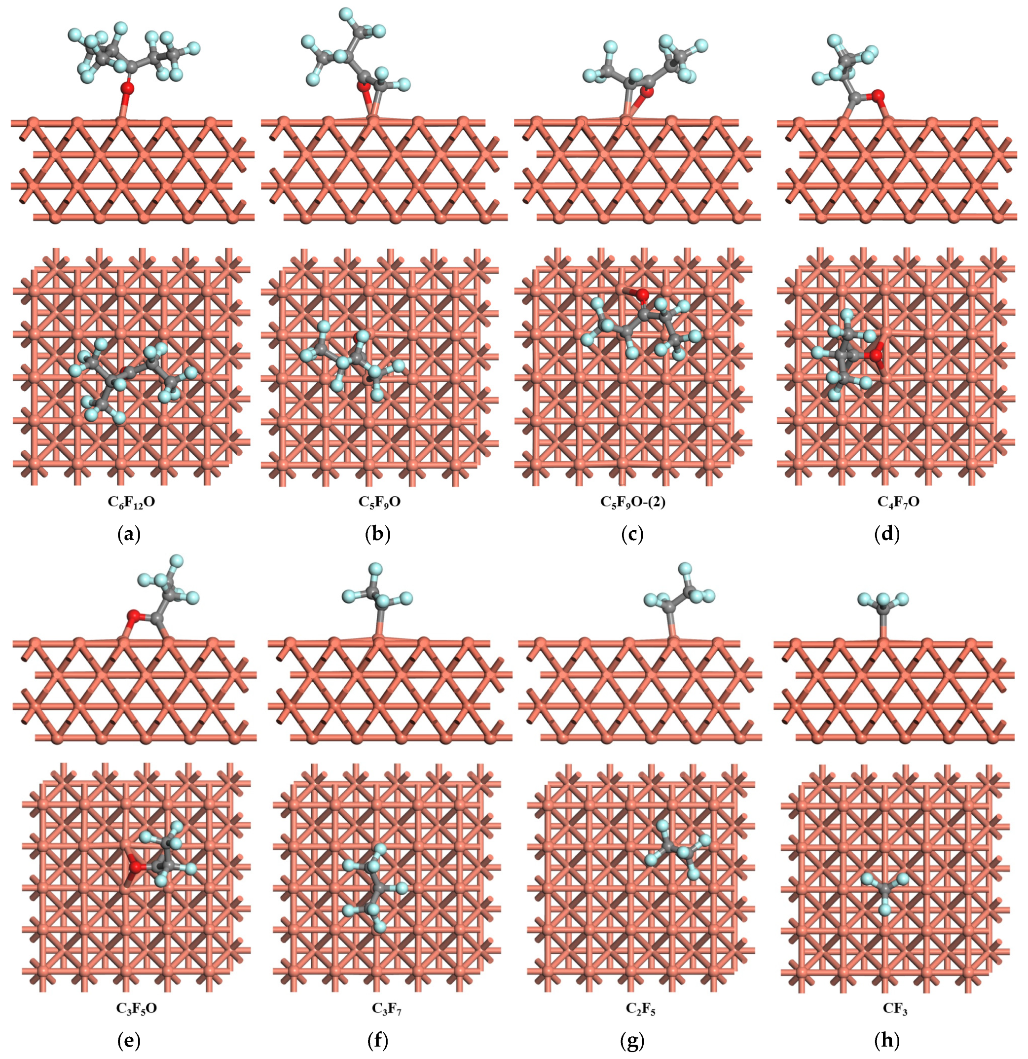 2.1.2. Adsorption of C6F12O and Products on Cu (1 1 0) Surface