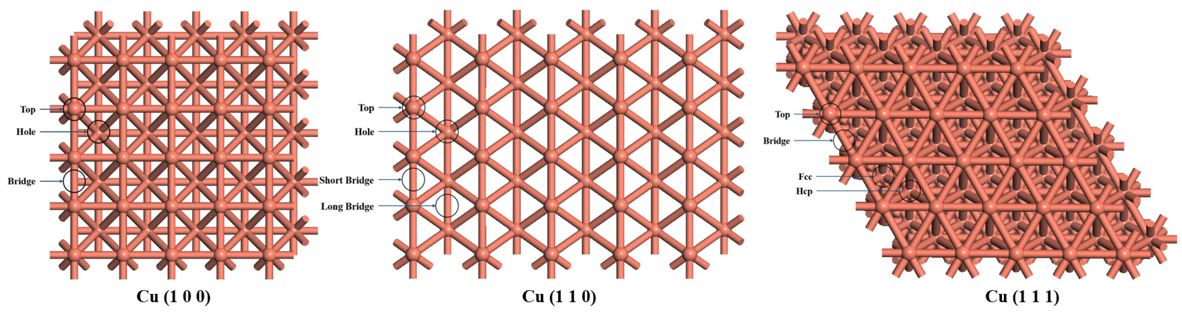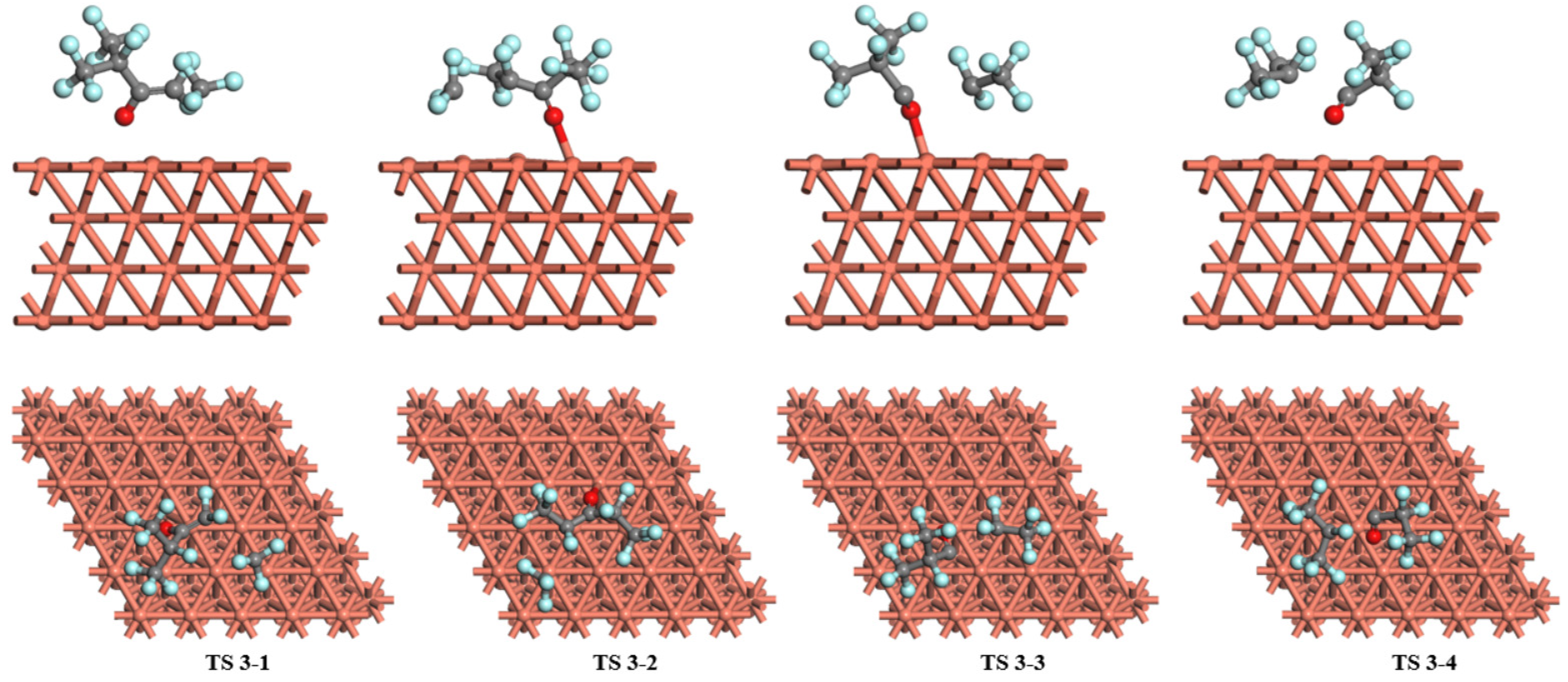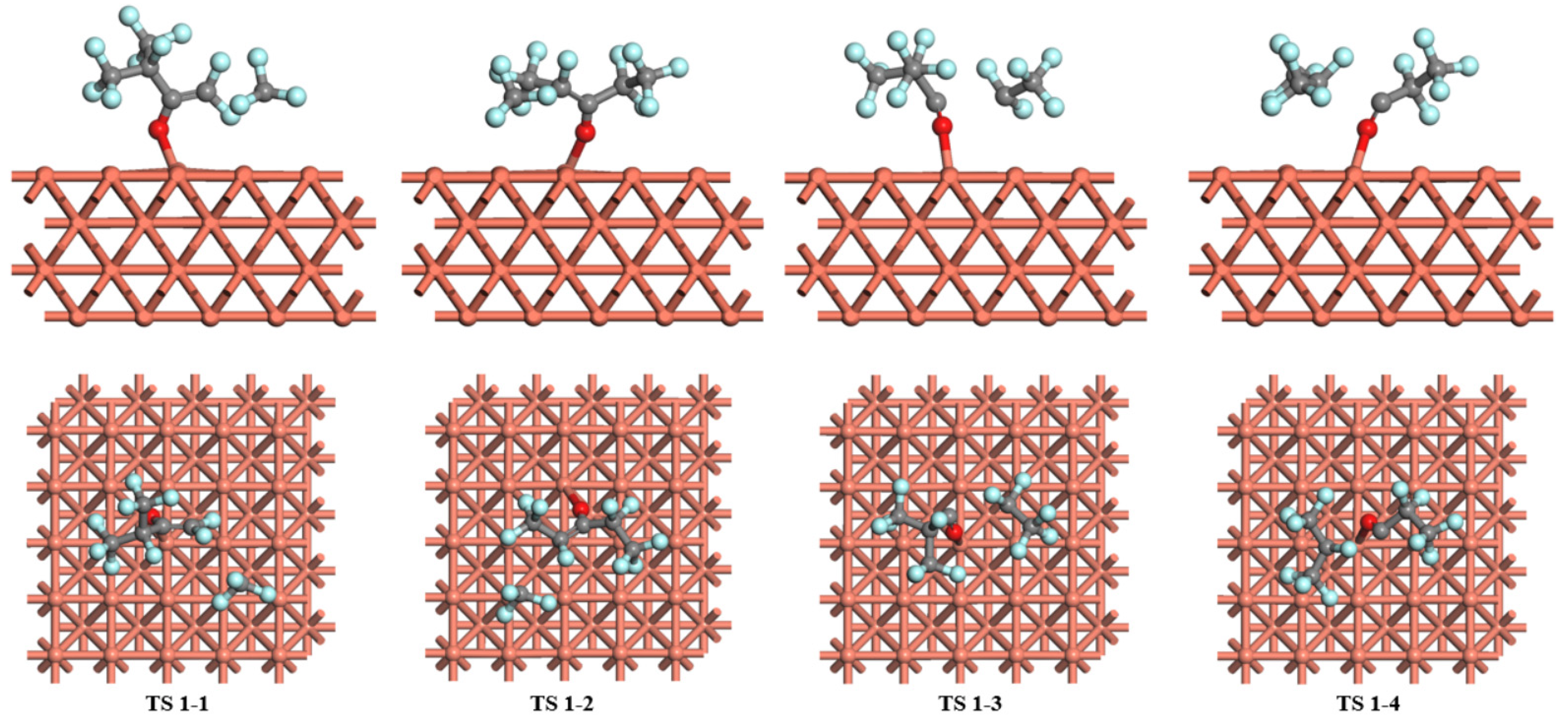 2.4. Decomposition of C6F12O on Cu (1 0 0), Cu (1 1 0), and Cu (1 1 1) Surfaces