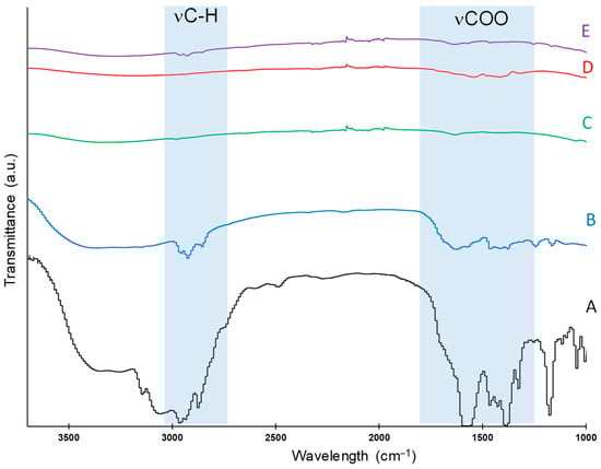 The infrared spectra were obtained by diffuse reflectance infrared Fourier transform (DRIFT) spectroscopy on a Thermo Scientific Nicolet TM iS TM 50 IR-TF spectrophotometer (Thermo Fisher Scientific, Waltham, MA, USA). The spectra were recorded from 4000 to 400 cm−1 at room temperature.