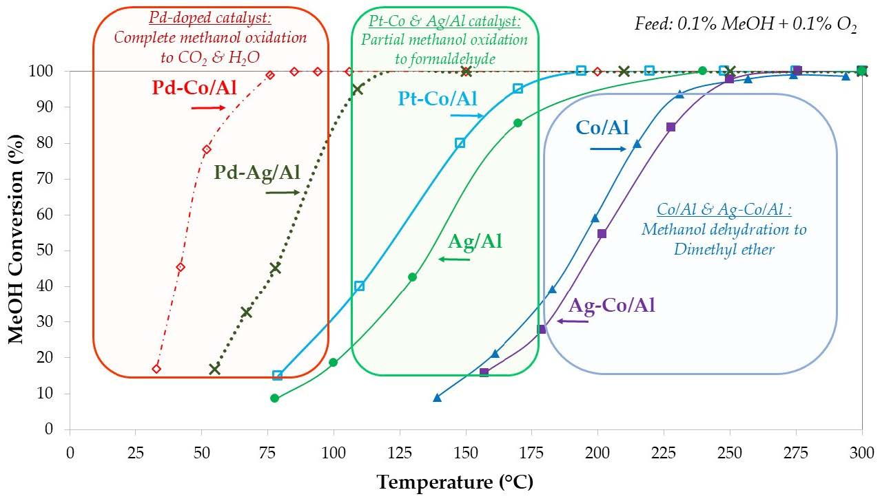 Pachatouridou, E.; Lappas, A.; Iliopoulou, E. Methanol Oxidation over Pd-Doped Co- and/or Ag-Based Catalysts: Effect of Impurities (H2O and CO). Catalysts 2025, 15, 1129. https://doi.org/10.3390/catal15121129