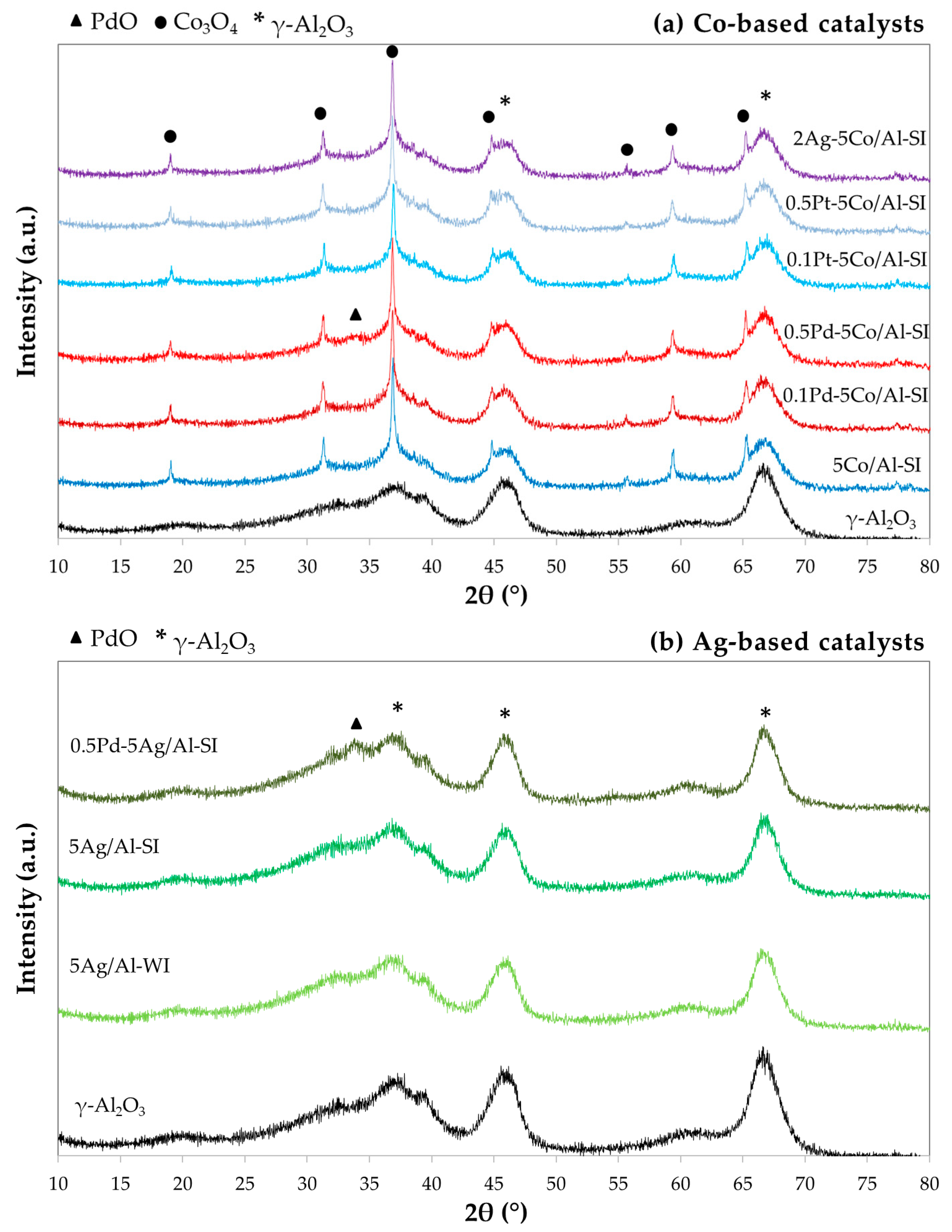 - Iliopoulou, E.F.; Pachatouridou, E.; Lappas, A.A. Novel Nanostructured Pd/Co-Alumina Materials for the Catalytic Oxidation of Atmospheric Pollutants. Nanomaterials 2024, 14, 124. [Google Scholar] [CrossRef] [PubMed]