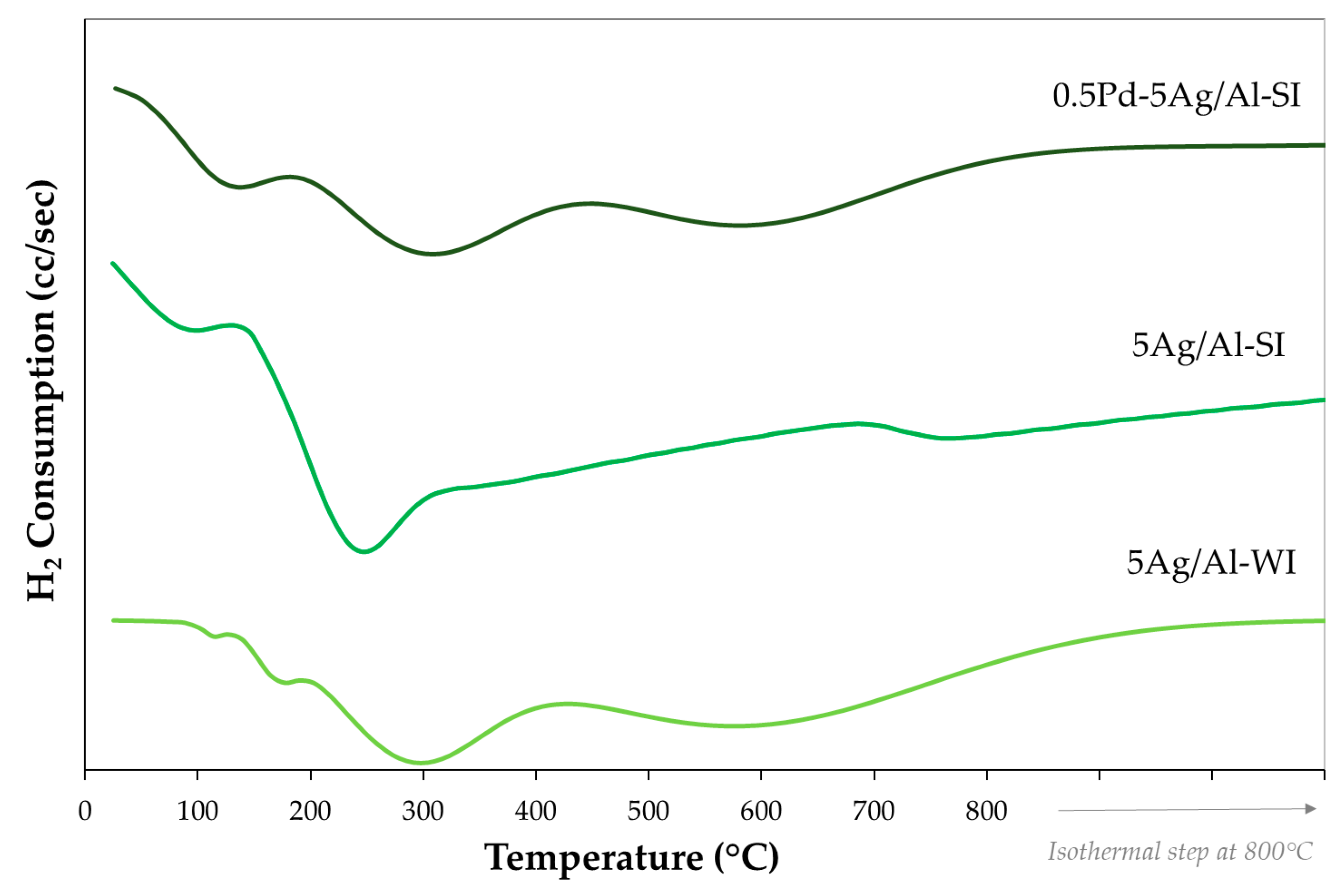 2.3.2. Effect of Synthesis Method and Pd-Doping on Ag-Based Catalysts