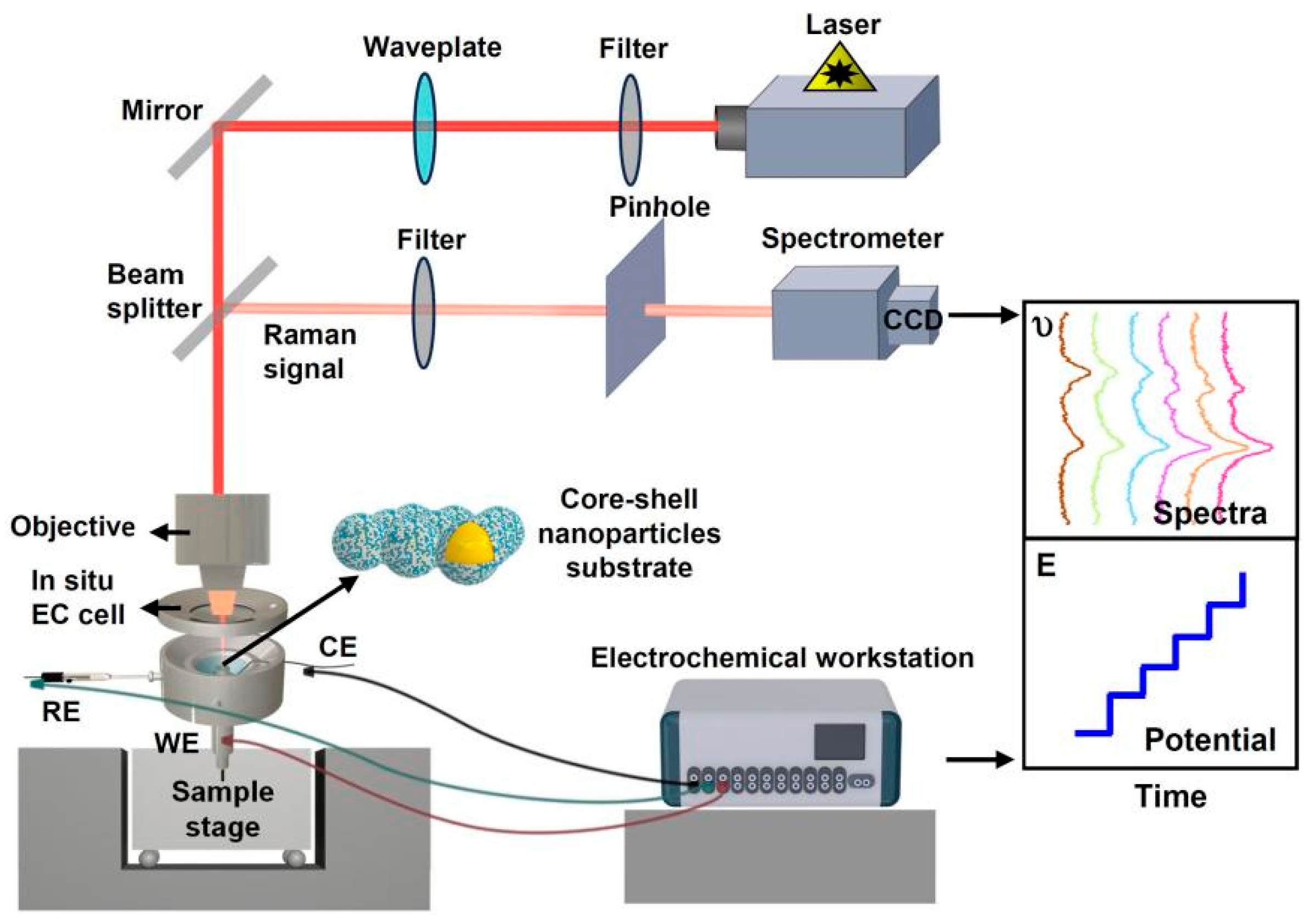 - Haryanto, A.; Lee, C.W. Shell Isolated Nanoparticle Enhanced Raman Spectroscopy for Mechanistic Investigation of Elec-trochemical Reactions. Nano Converg. 2022, 9, 9. [Google Scholar] [CrossRef]