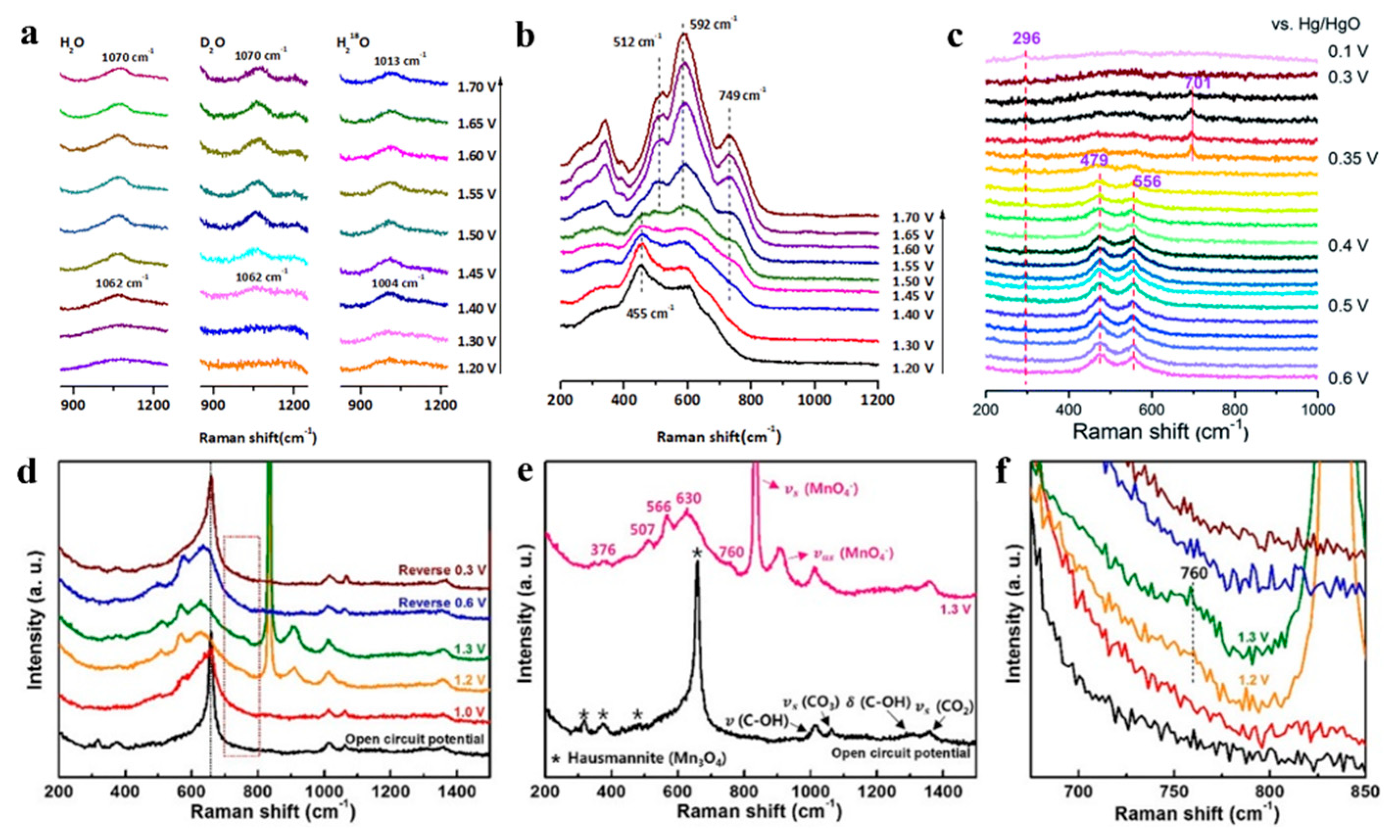 - Cho, K.H.; Park, S.; Seo, H.; Choi, S.; Lee, M.Y.; Ko, C.; Nam, K.T. Capturing Manganese Oxide Intermediates in Electro-chemical Water Oxidation at Neutral pH by In Situ Raman Spectroscopy. Angew. Chem. Int. Ed. 2021, 60, 4673–4681. [Google Scholar] [CrossRef]
