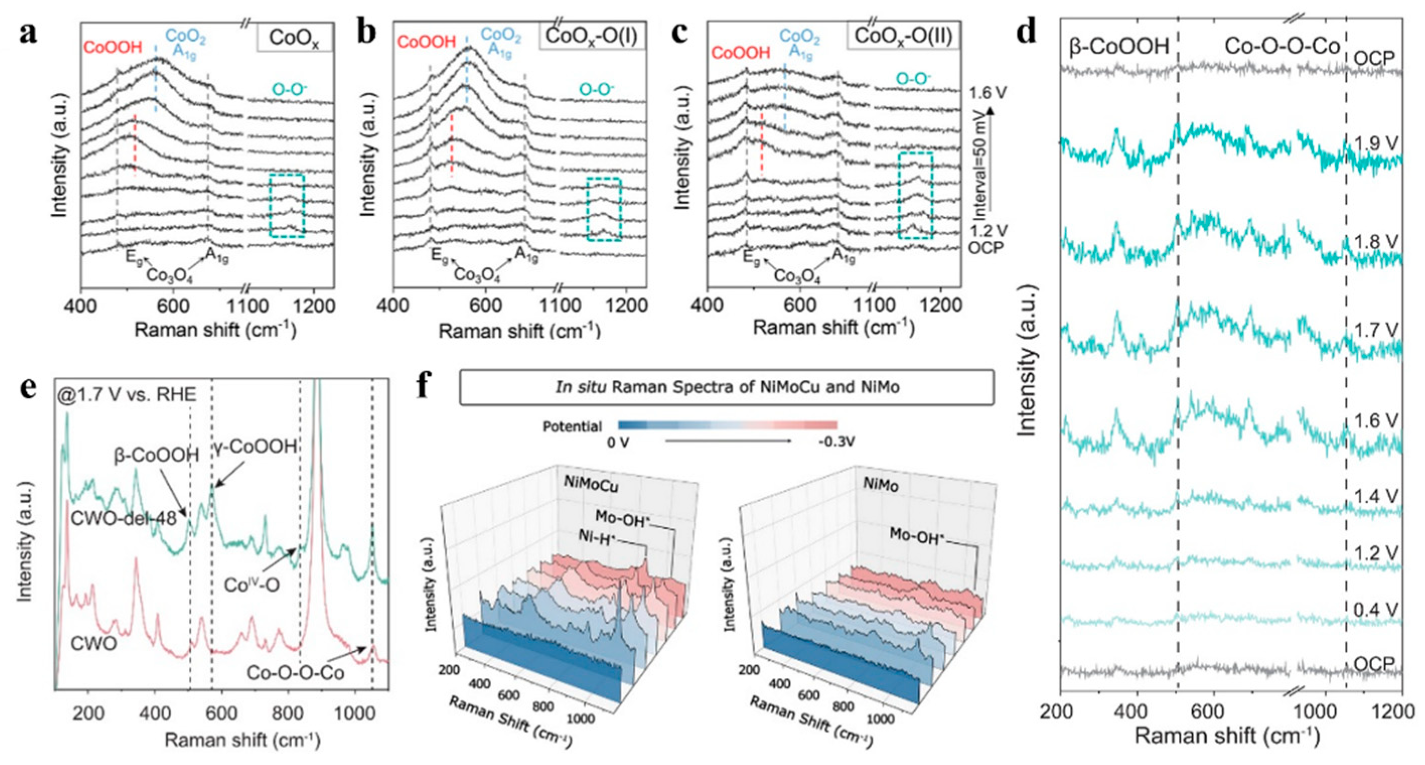 - Hu, Y.; Hu, C.; Du, A.; Xiao, T.; Yu, L.; Yang, C.; Xie, W. Interfacial Evolution on Co-Based Oxygen Evolution Reaction Electrocatalysts Probed by Using In Situ Surface-Enhanced Raman Spectroscopy. Anal. Chem. 2022, 95, 1703–1709. [Google Scholar] [CrossRef] [PubMed]