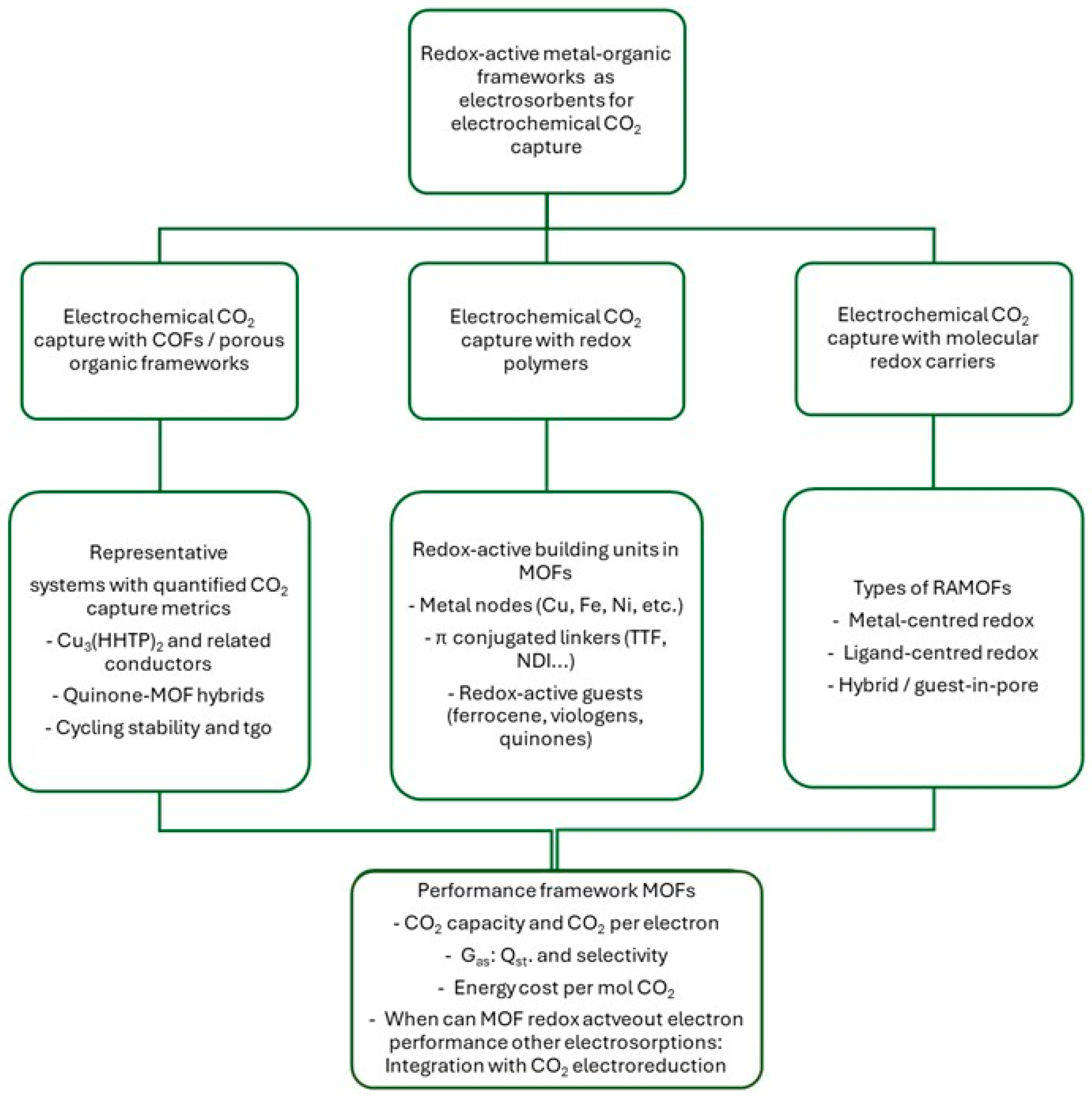3. Redox-Active MOFs as Electrosorbents for CO2: Archetypes and Mechanisms