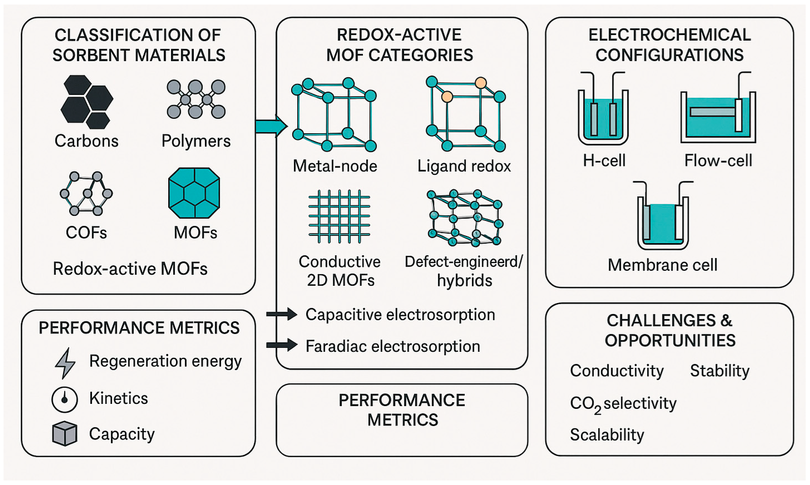 5. Prospects and Challenges of Redox-Active MOFs in CO2 Capture