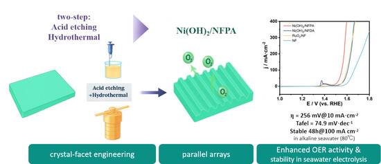 APA StyleLiu, L., Liu, H., Jia, B., Qu, X., & Qin, M. (2025). Facet-Engineered Parallel Ni(OH)2 Arrays for Enhanced Bubble Dynamics and Durable Alkaline Seawater Electrolysis. Catalysts, 15(12), 1144. https://doi.org/10.3390/catal15121144
