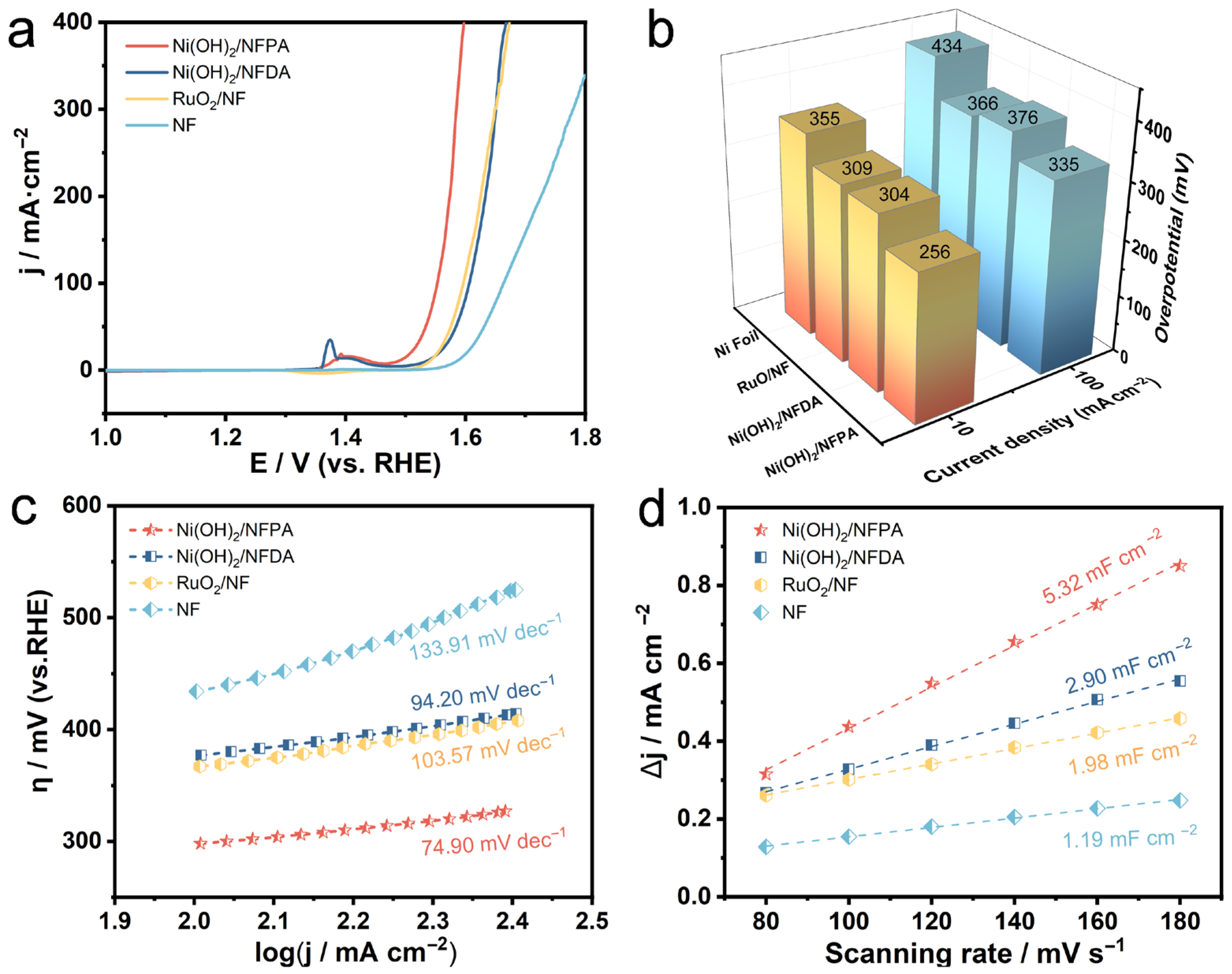 3.3. Synthesis of Ni(OH)2/NFPA and Ni(OH)2/NFDA