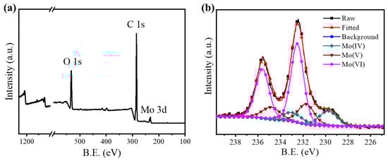 (a) the XPS spectrum of MoOx-700, (b) Mo 3d core-level spectrum of MoOx-700.