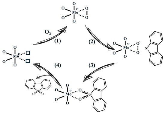 Possible reaction procedure at Mo(IV) sites during the catalytic aerobic oxidative desulfurization procedure.