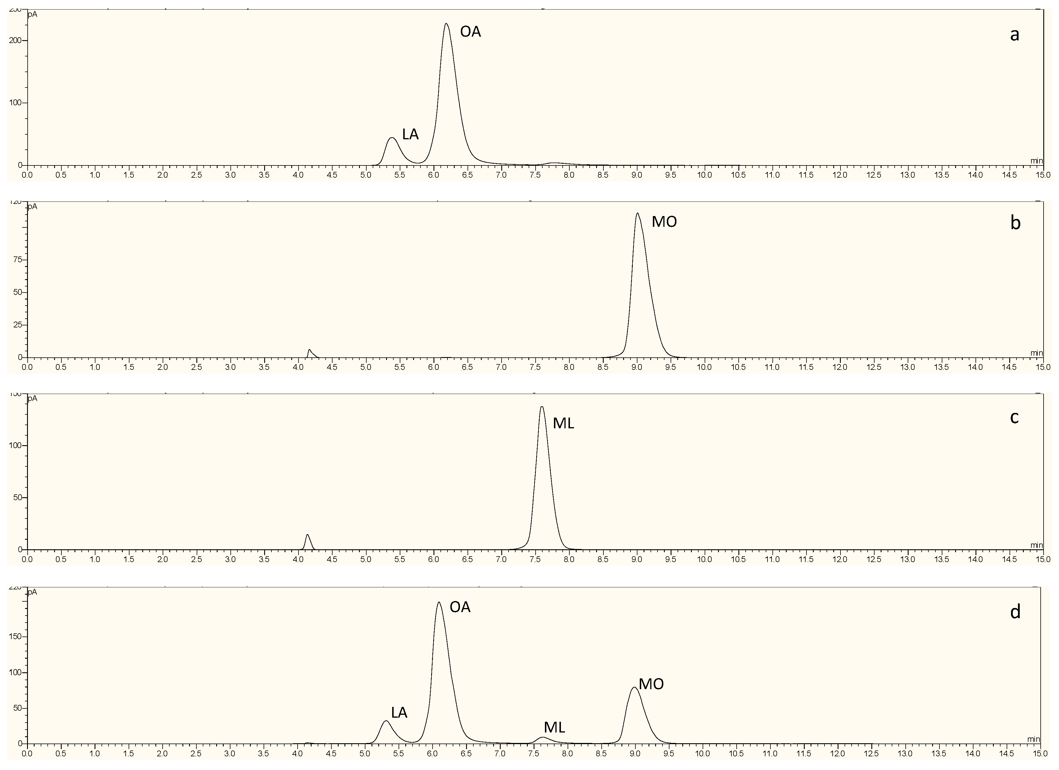 2.5. Esterification Under Ultrasonic and Thermal Activation