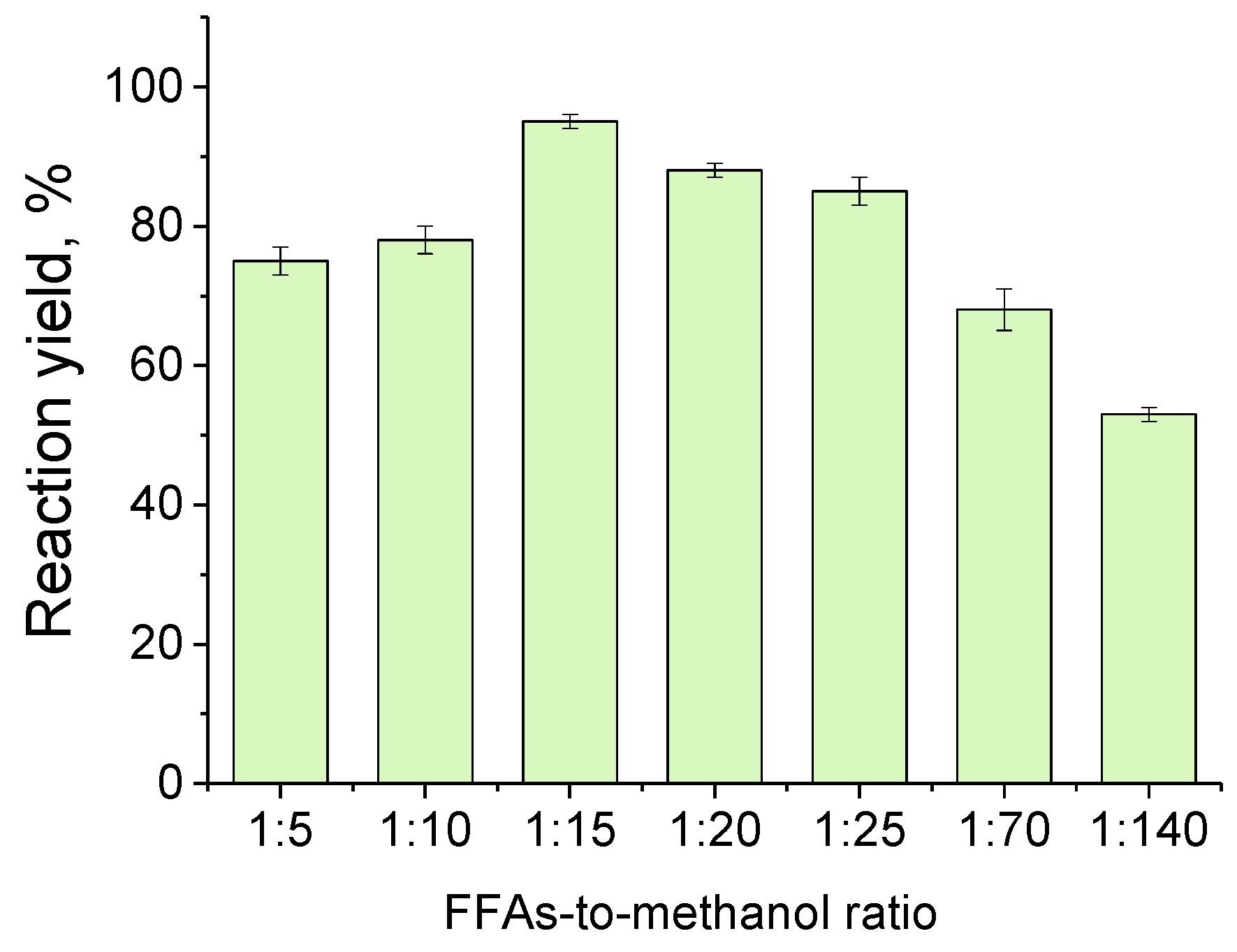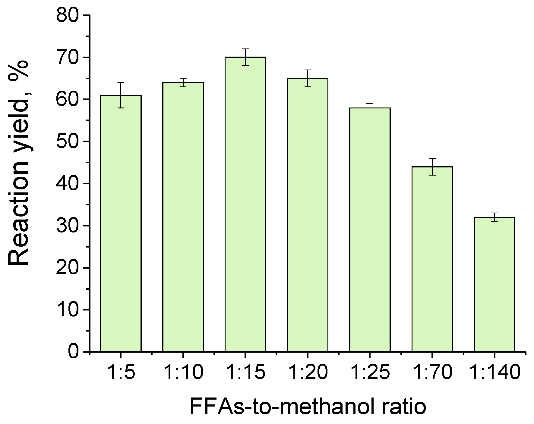 2.3. Effect of FFAs-to-Methanol Molar Ratio on the Reaction Yield