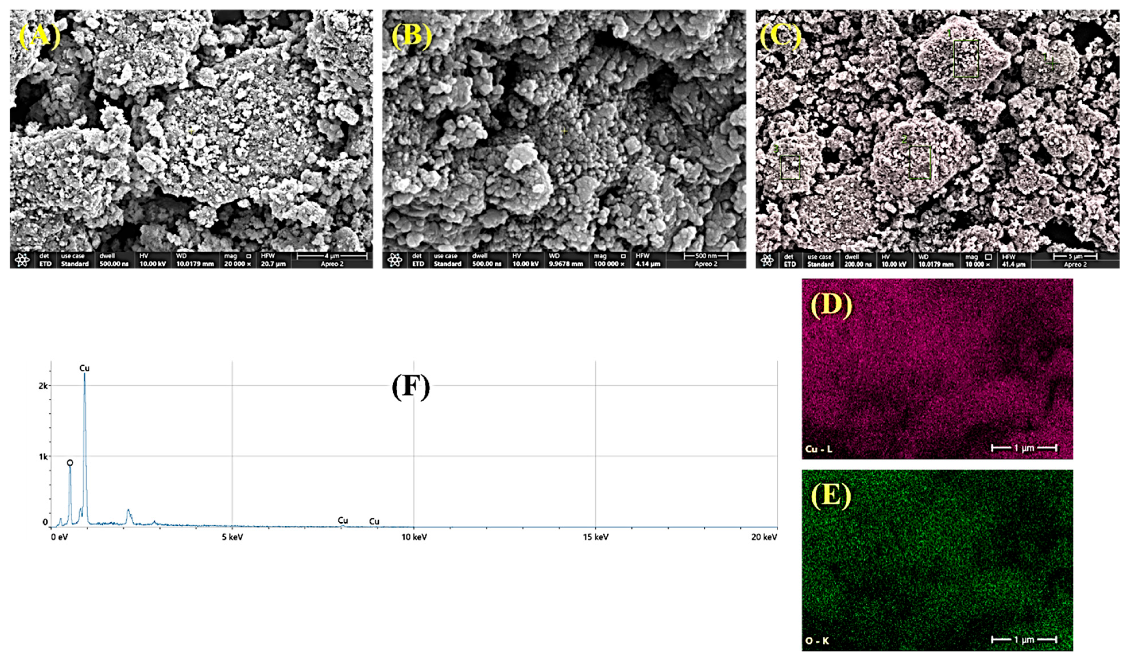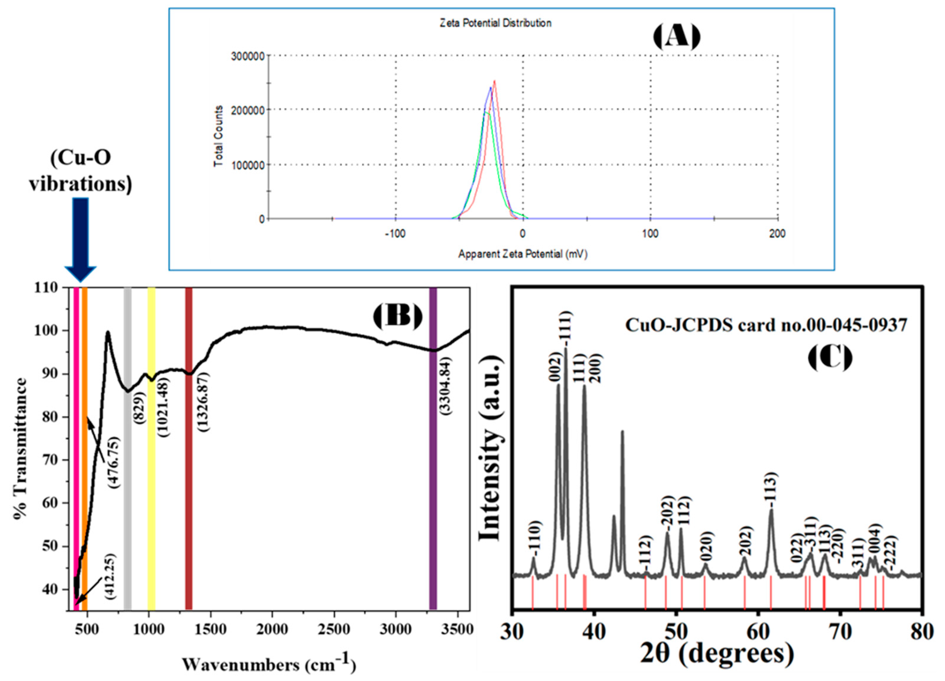 3.3. Green Synthesis of Copper Oxide Nanostructures