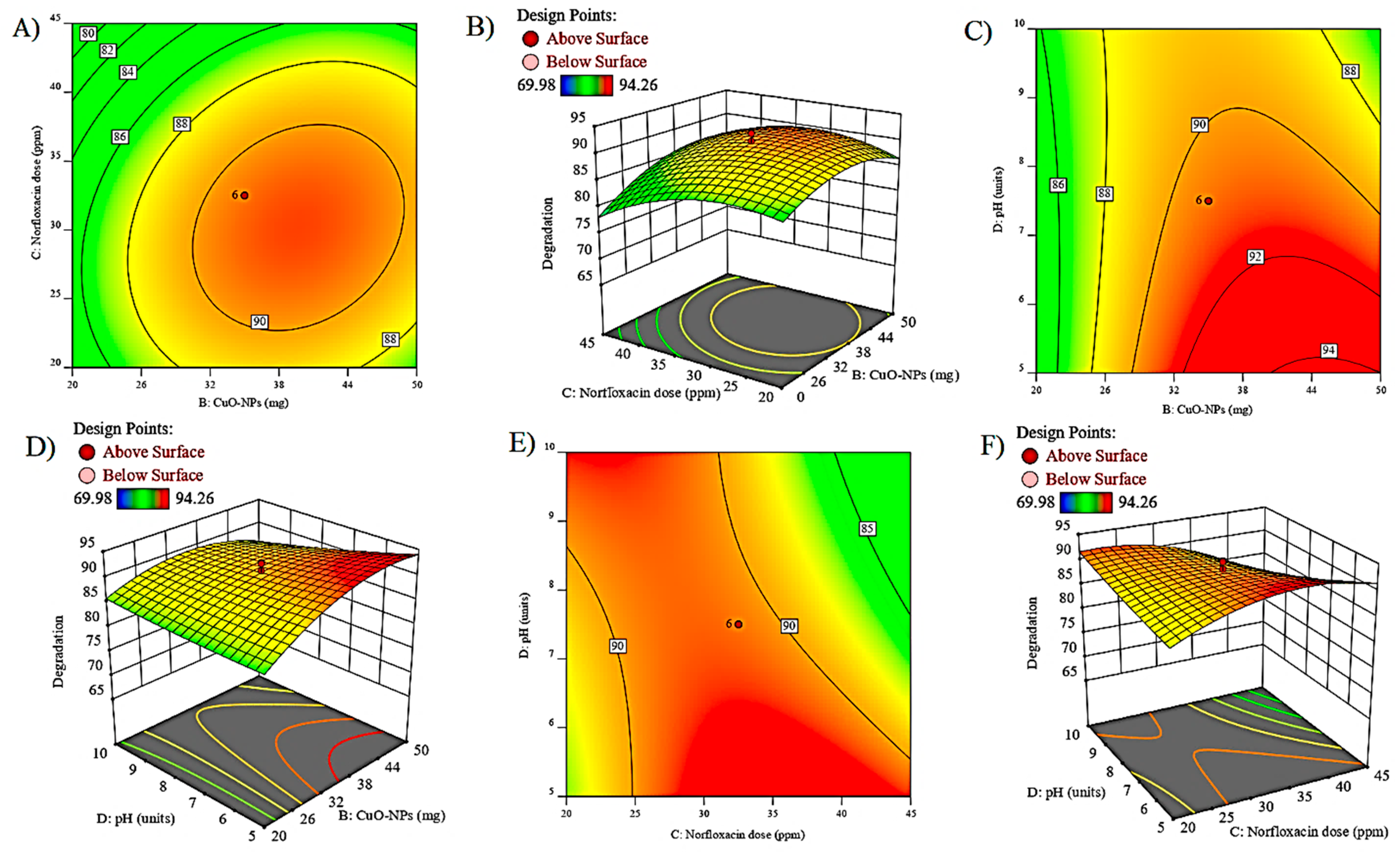 | Quadratic vs. 2FI | 654.14 | 4 | 163.53 | 38.44 | <0.0001 | Suggested | ||