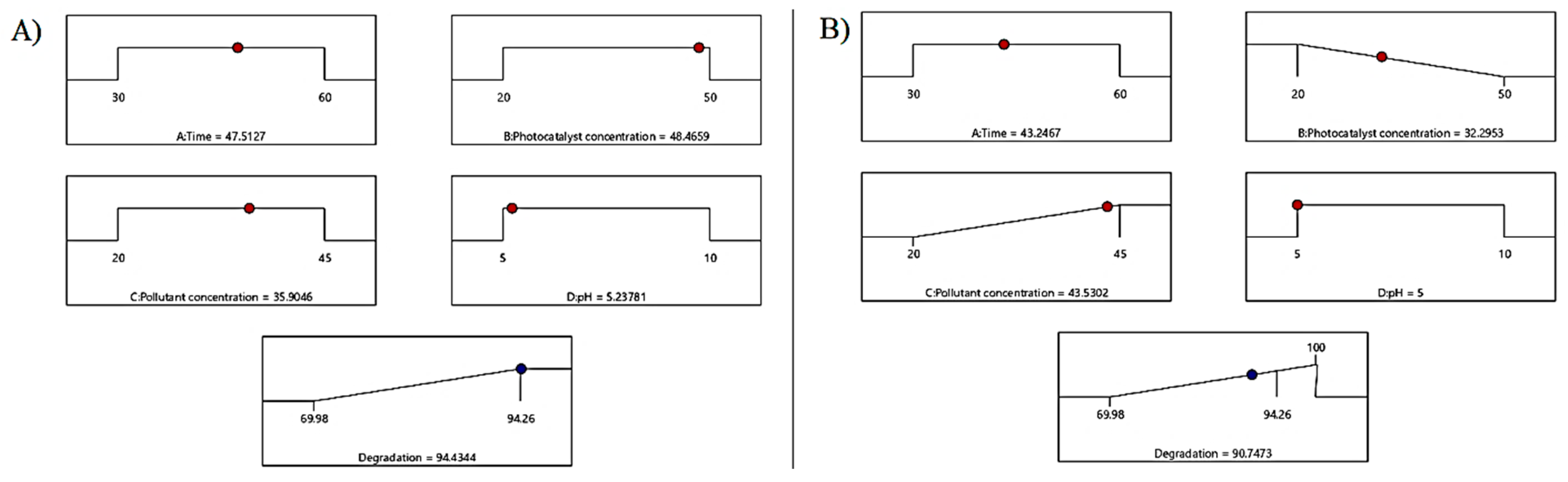 3.4.1. Central Composite Design (CCD)-Based Optimization Methodology for Photocatalysis
