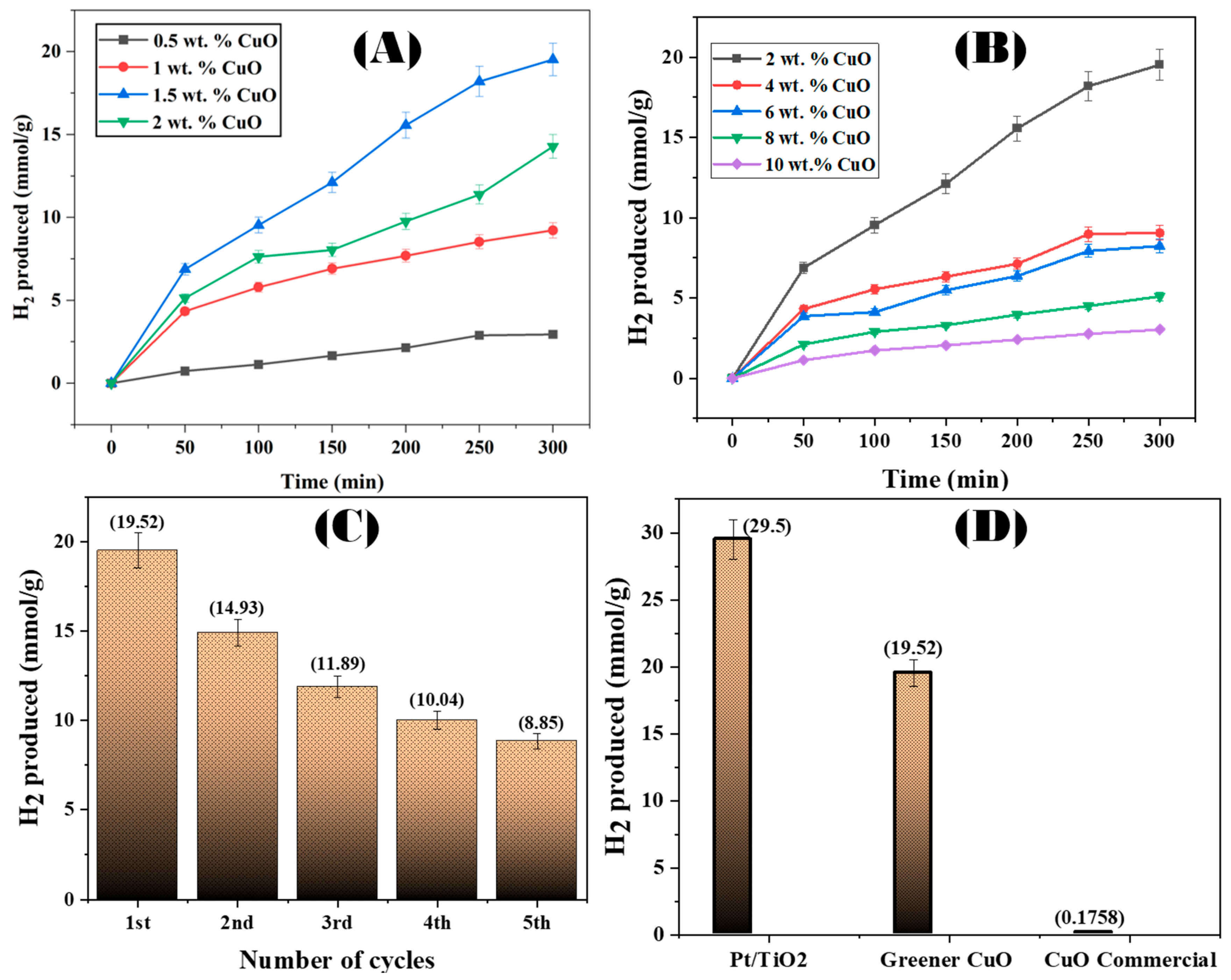 3.5. Photocatalytic H2 Production Test