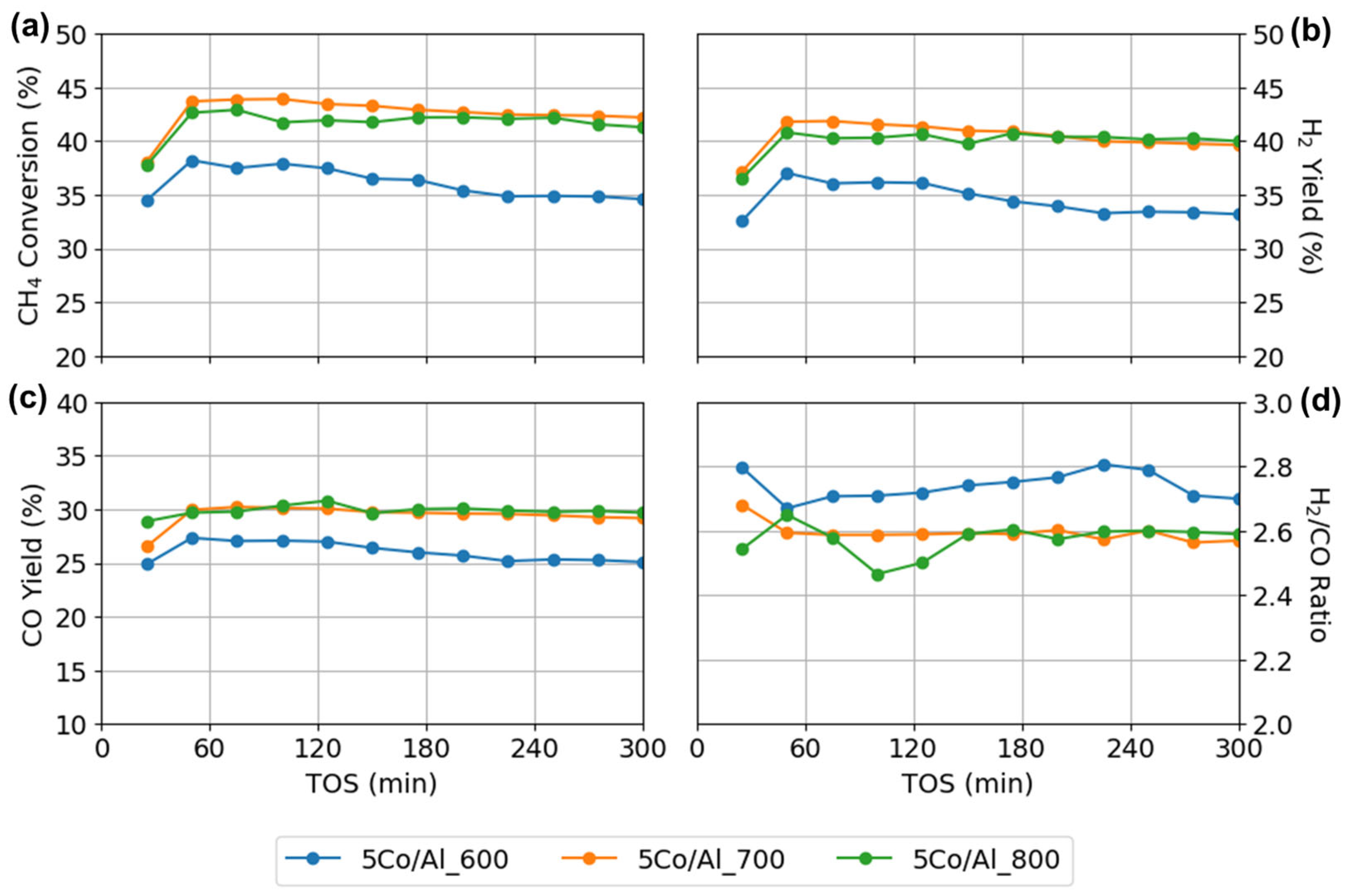 | 5Co/10MgAl | 547.1 | 16.19 | 677.8 | 23.79 | 800.6 | 34.98 | 878.0 | 12.94 | 938.8 | 12.10 | 831 |