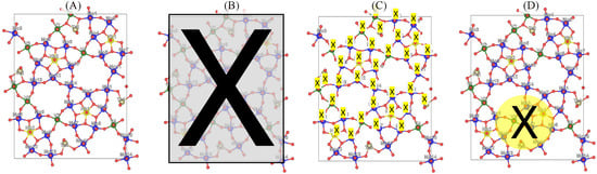 Active site conceptualization: (A) surface model for DFT calculations, (B) black-box conceptualization, (C) conventional conceptualization and (D) surface model consistent conceptualization. Atom colors: O, Mo, V, Nb, Te. X stands for the active site.